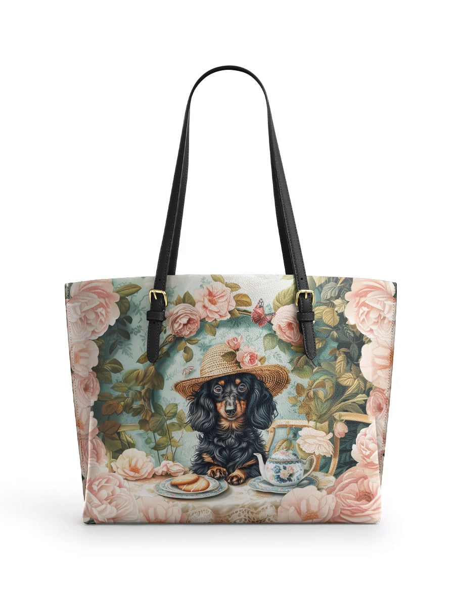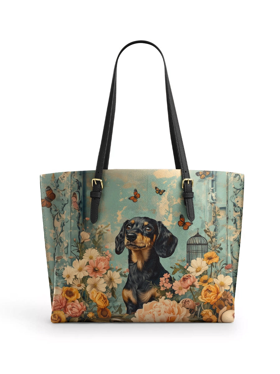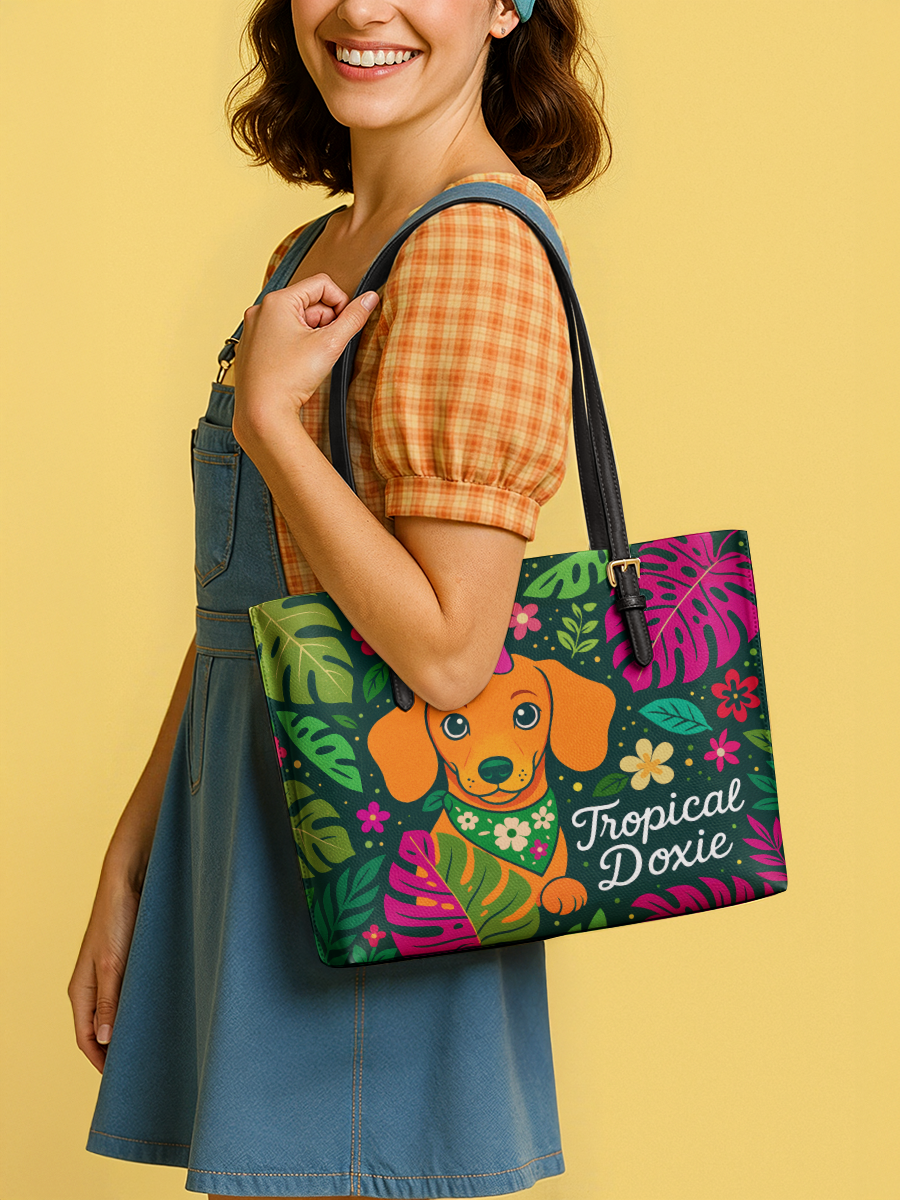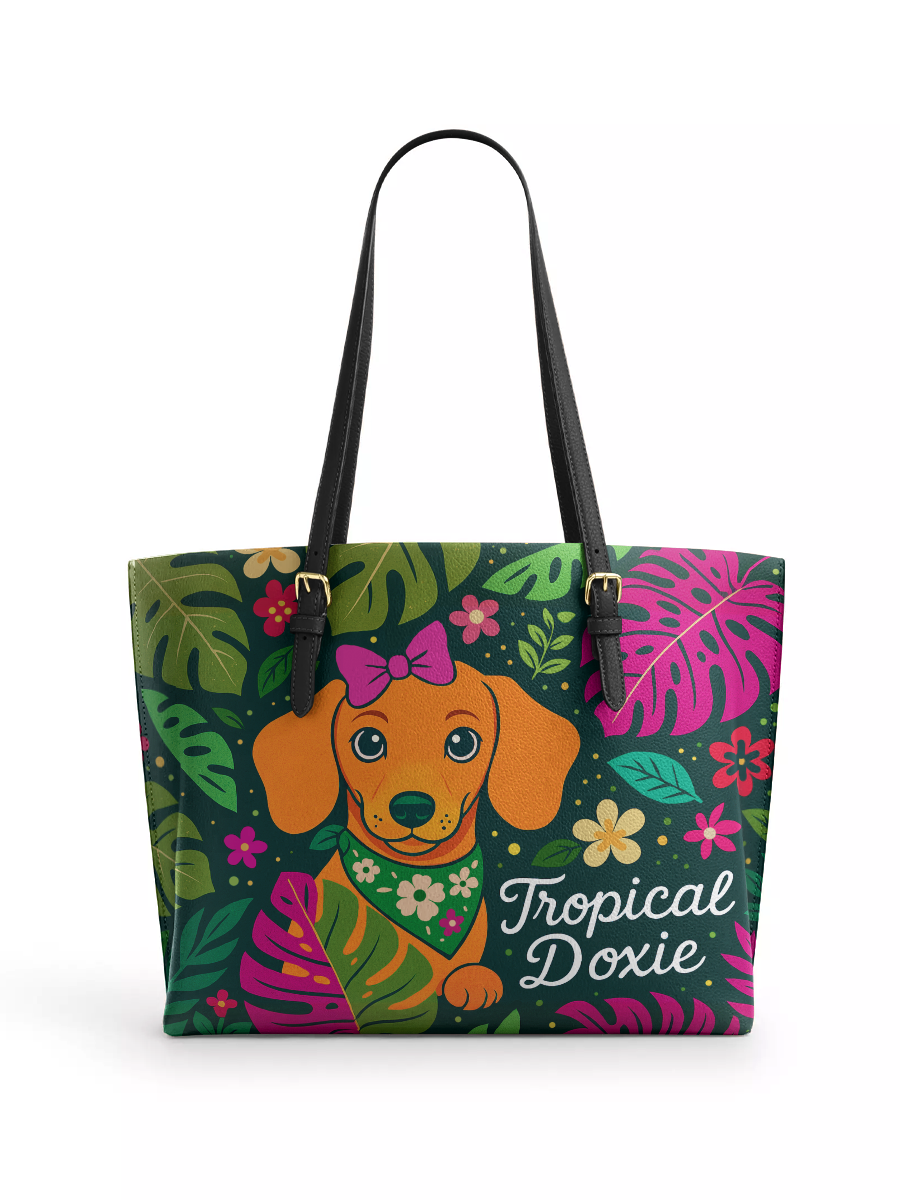 DachyCharm Tropical Doxie Leather Tote Bag