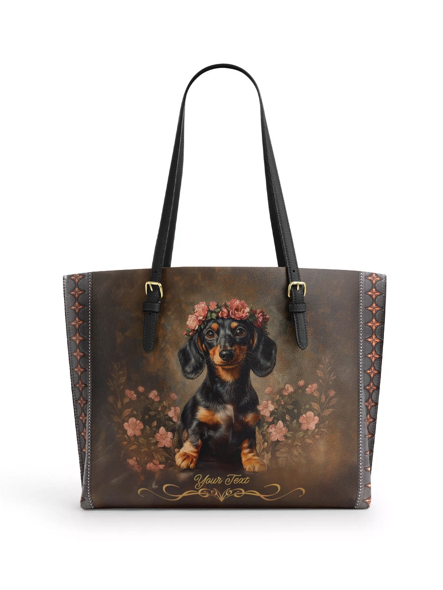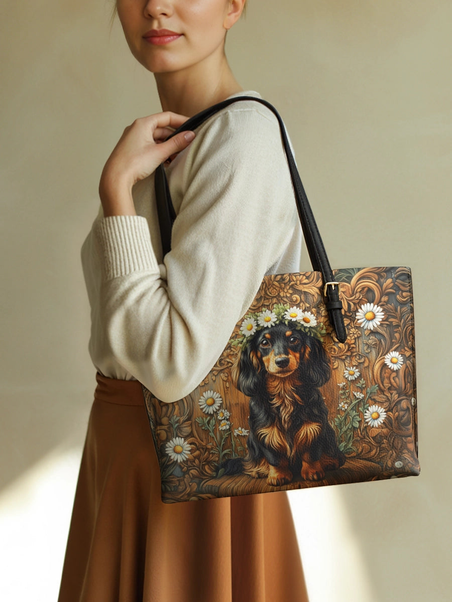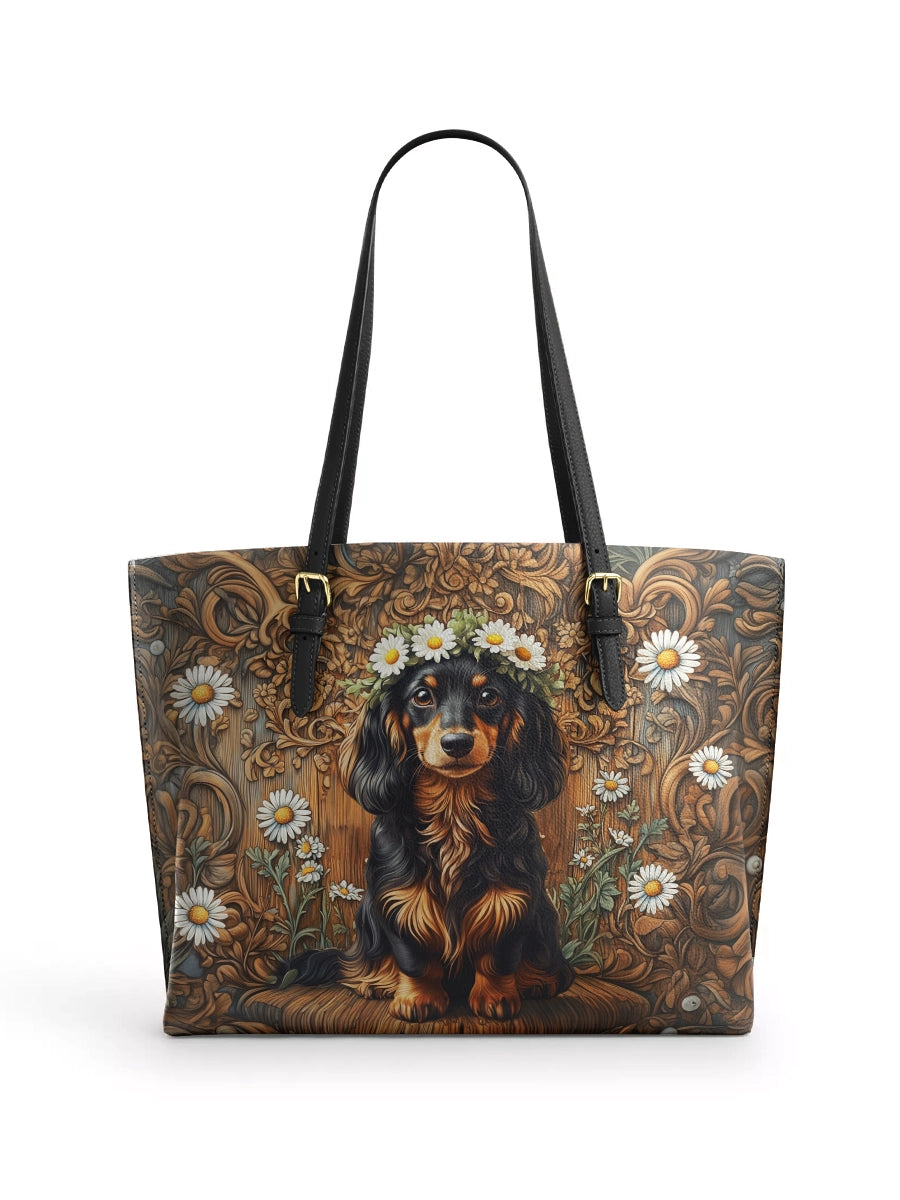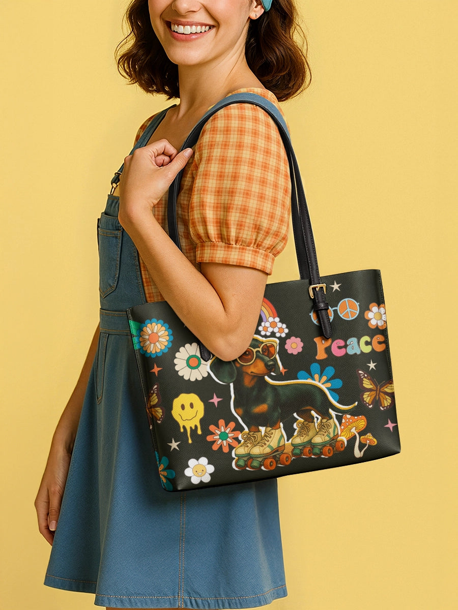 DachyCharm Groovy Doxie Vibes Leather Tote Bag