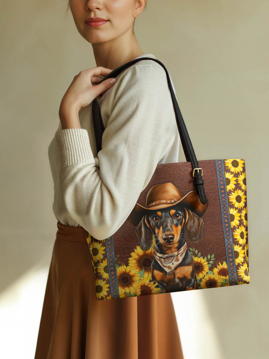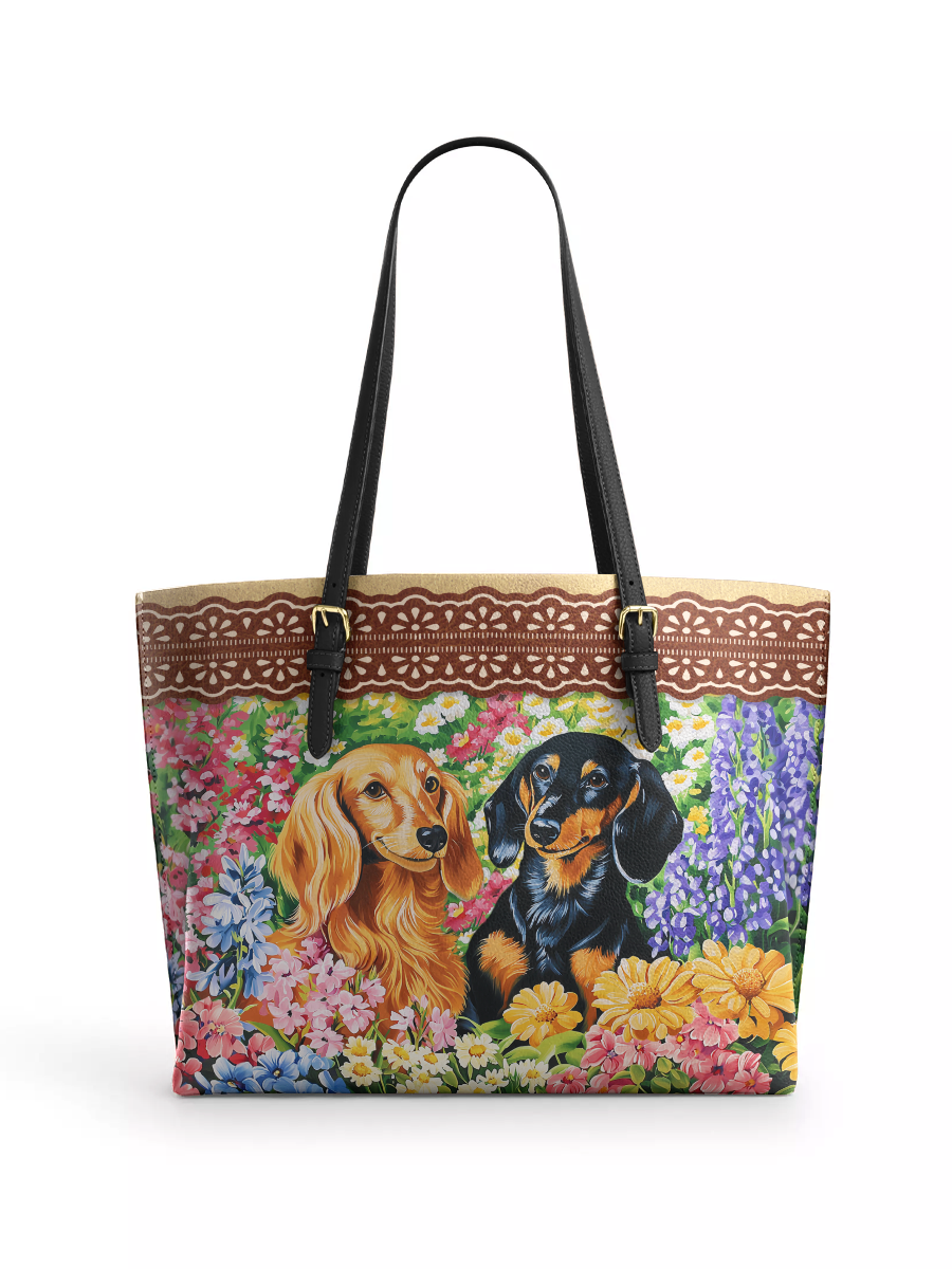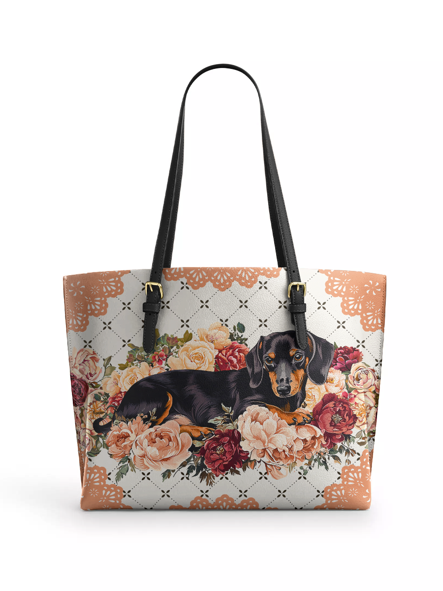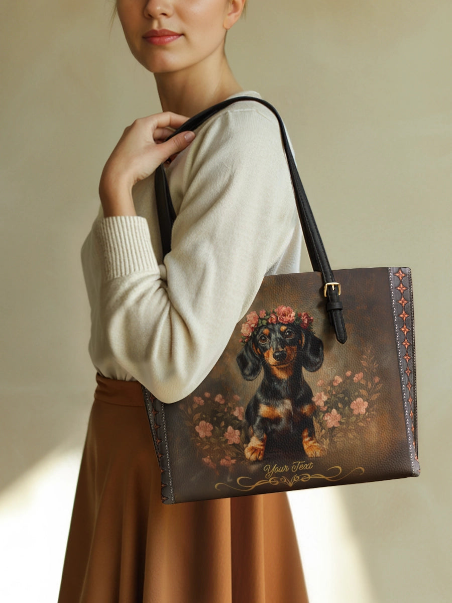 DachyCharm Groovy Doxie Vibes Leather Tote Bag