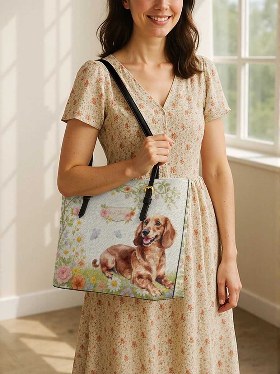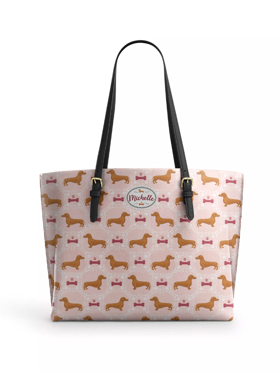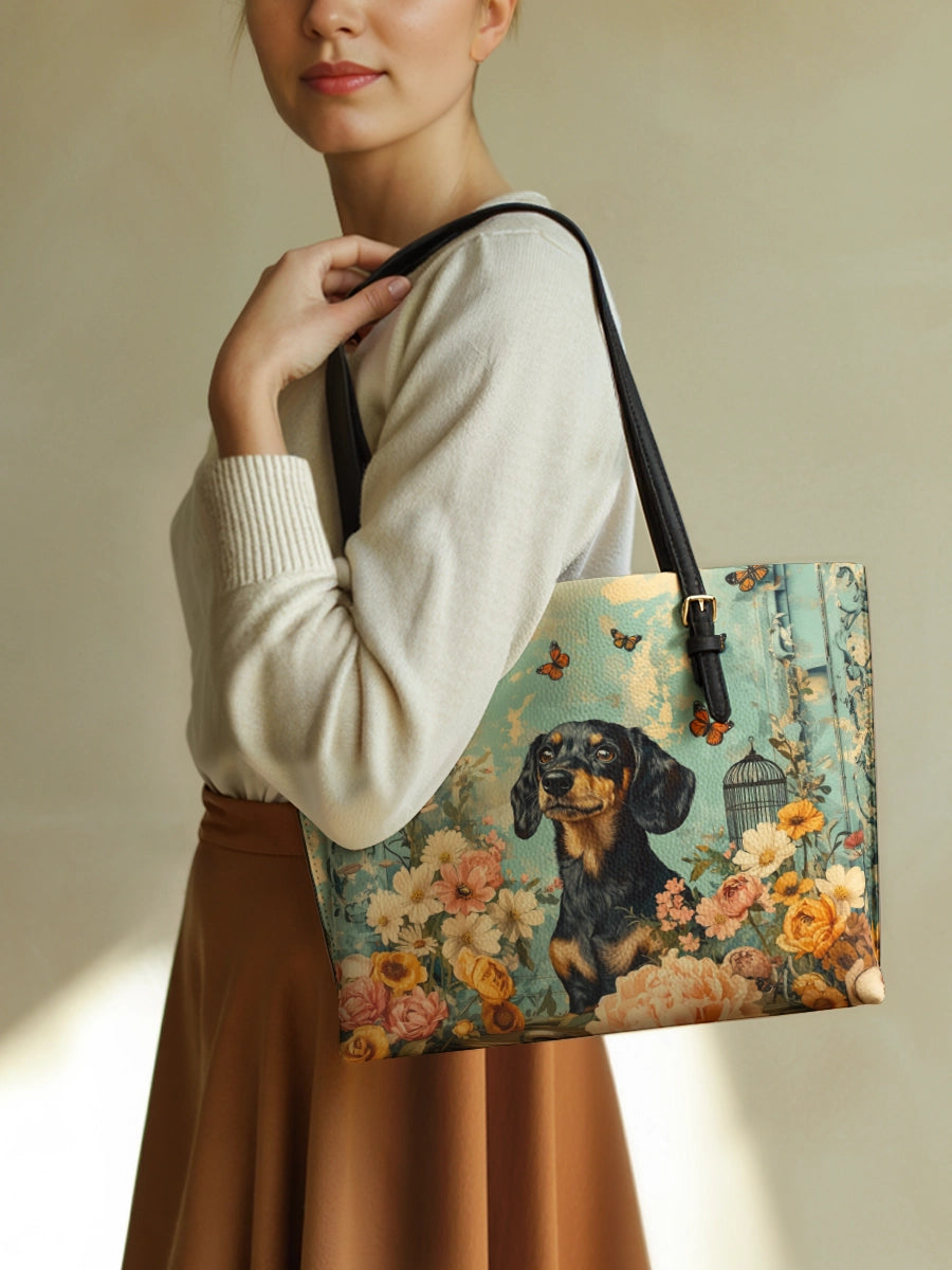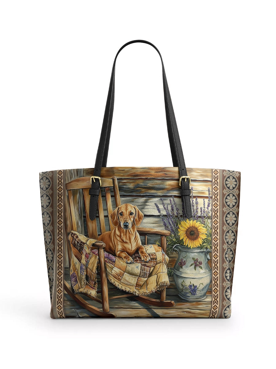 DachyCharm Groovy Doxie Vibes Leather Tote Bag