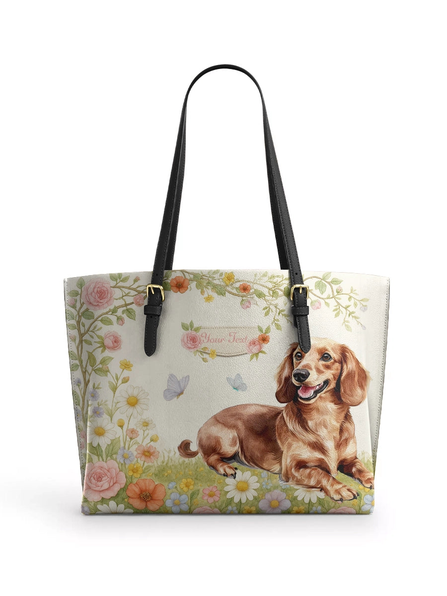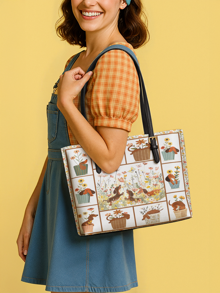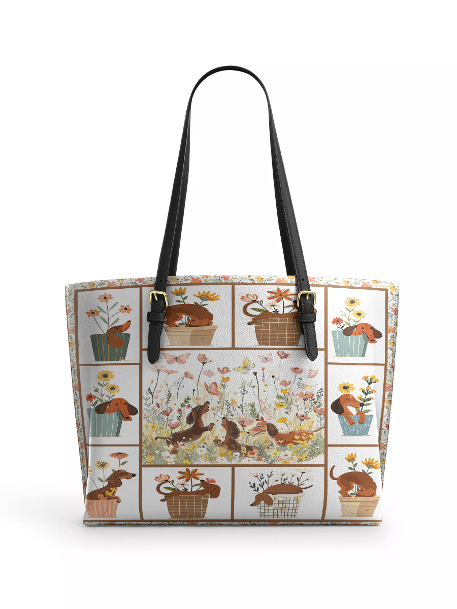 DachyCharm Paws Garden Leather Tote Bag