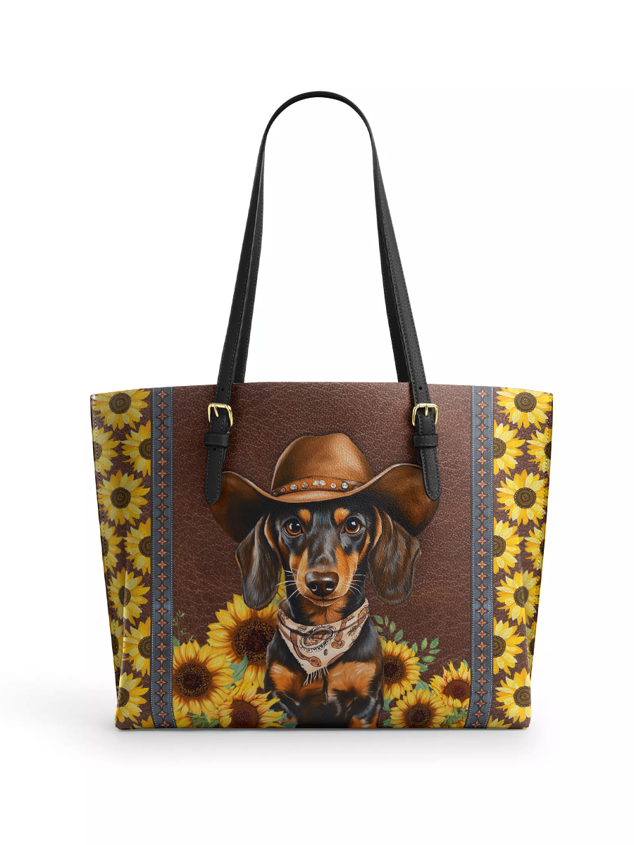 DachyCharm Sunflower Cowboy Leather Tote Bag
