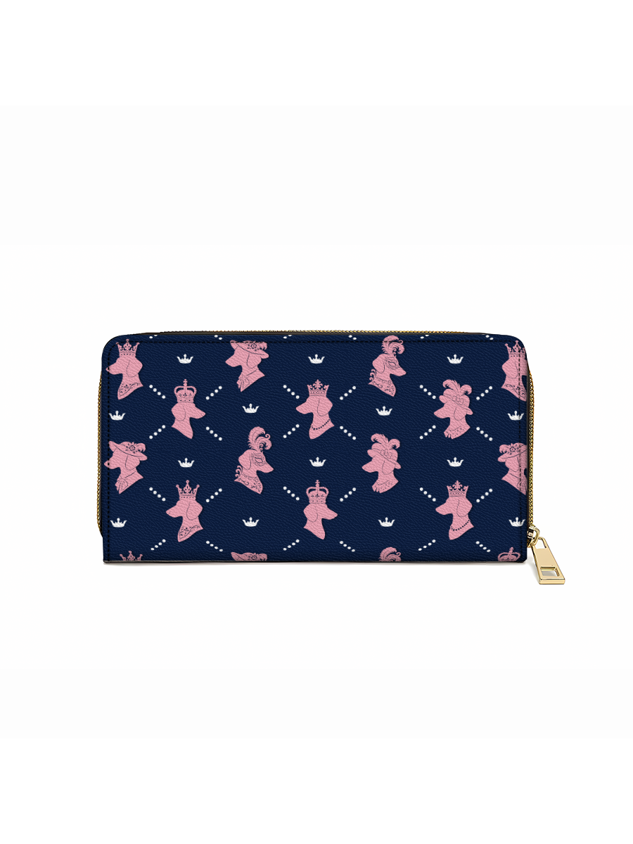 Bold, cheeky, and undeniably chic, the Royal Pawty wallet brings noble flair to your fingertips. With pink dachshunds in royal attire dancing across a navy canvas, it's equal parts runway-ready and puppy-playful.