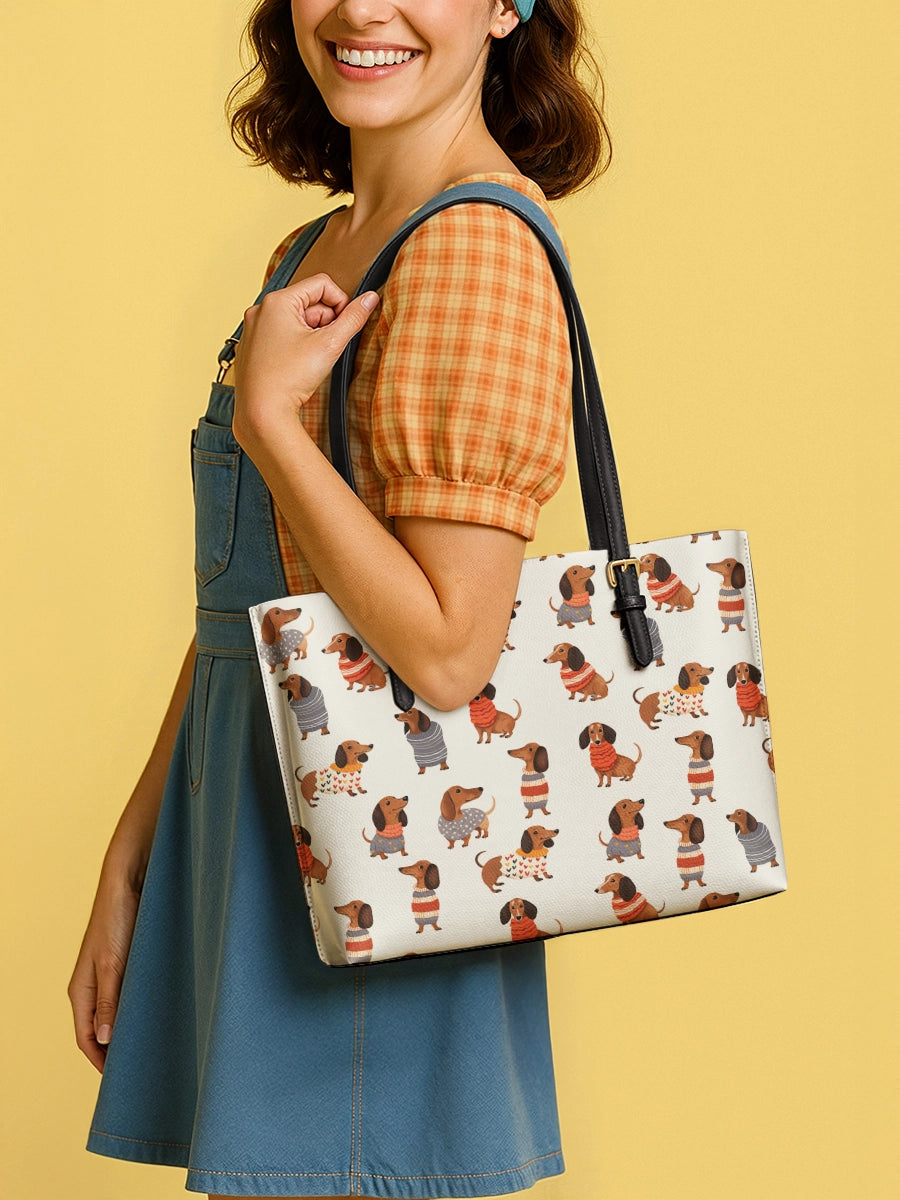 Charming, spirited, and unmistakably yours. The DachyCharm Tote Bag blends timeless elegance with playful dachshund artistry, capturing hearts with every glance. Crafted from premium leather and designed for everyday ease, it’s more than a bag—it’s a joyful expression of your unique bond.