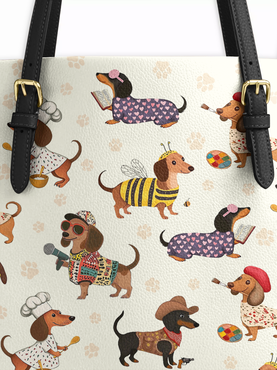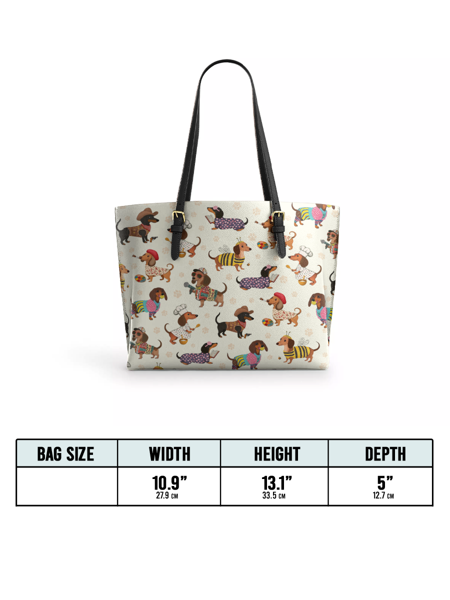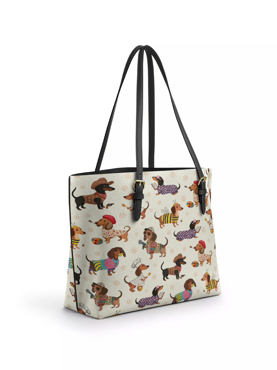 DachyCharm Dachshund Troupe Leather Tote Bag