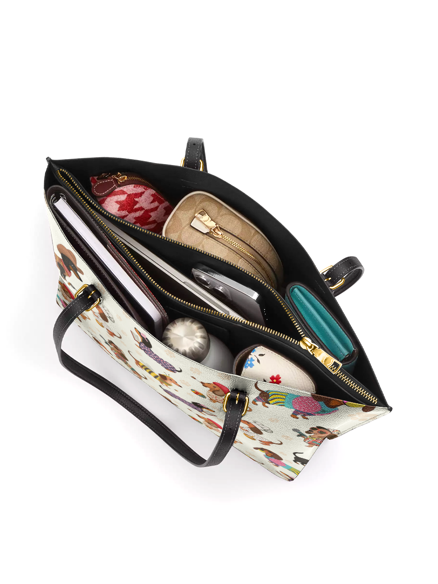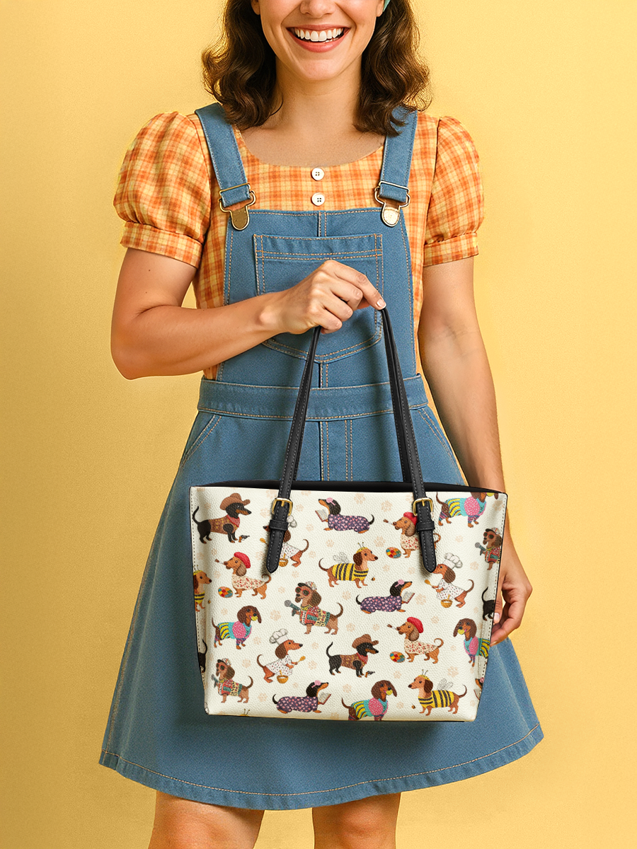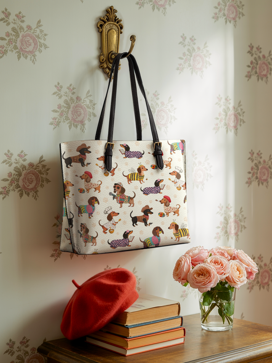 DachyCharm Dachshund Troupe Leather Tote Bag