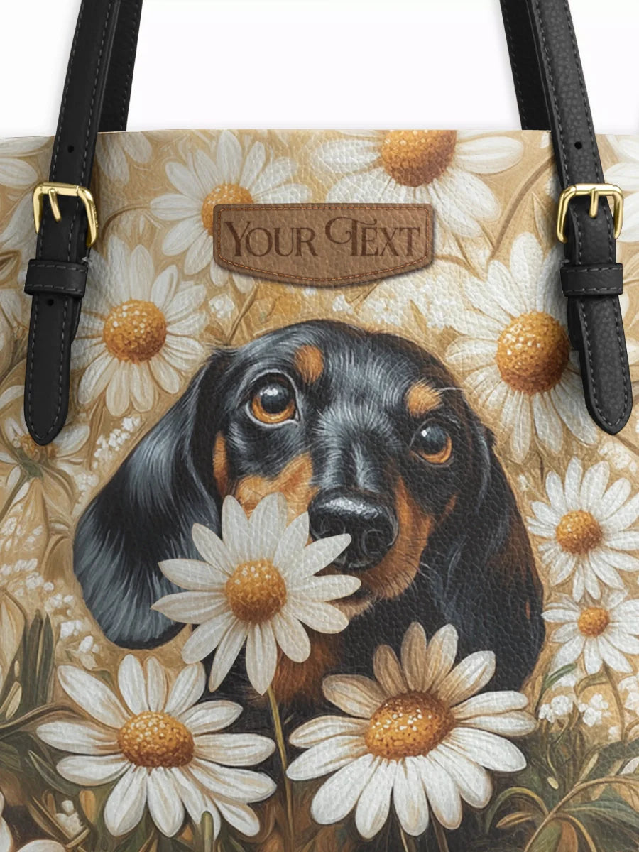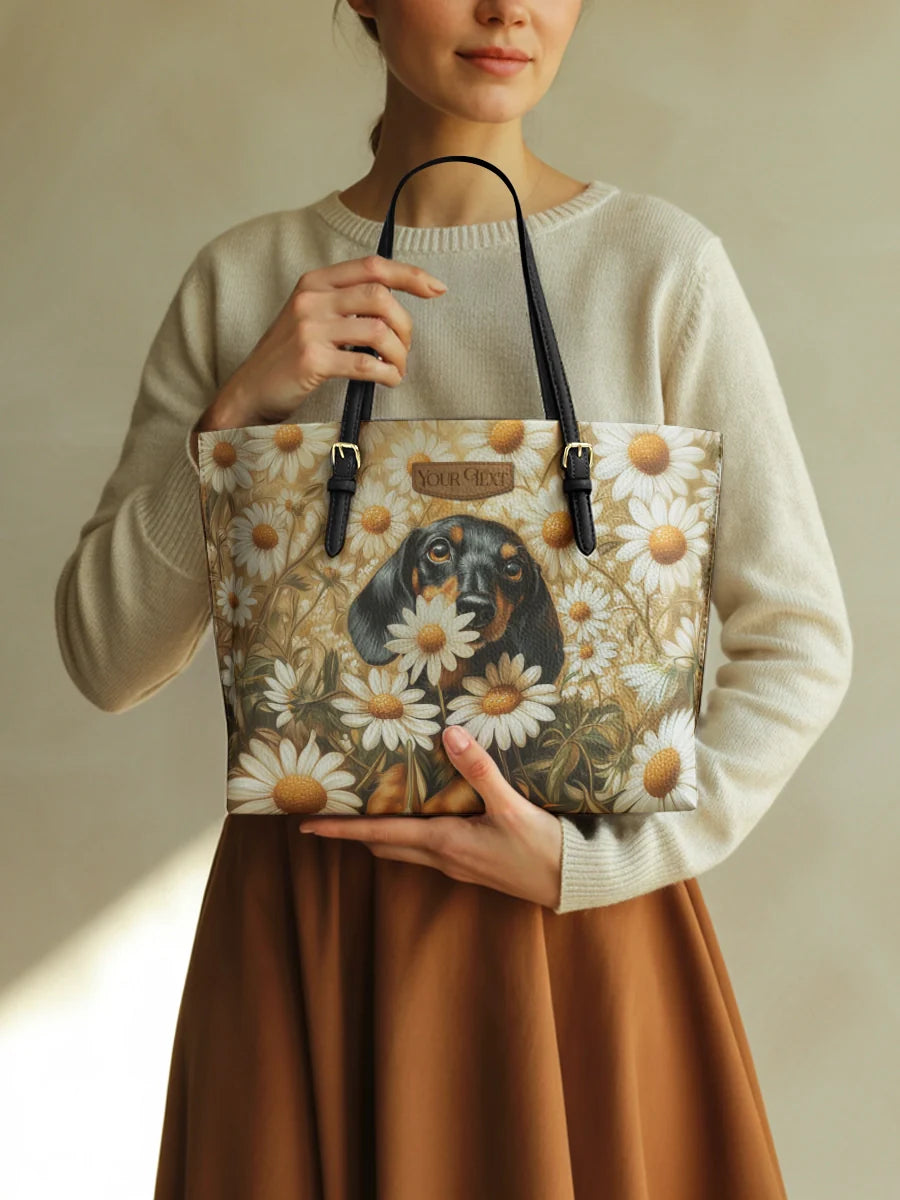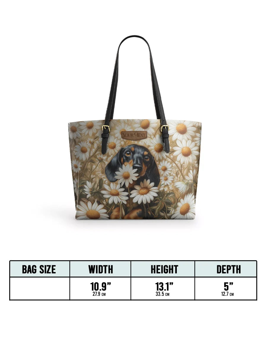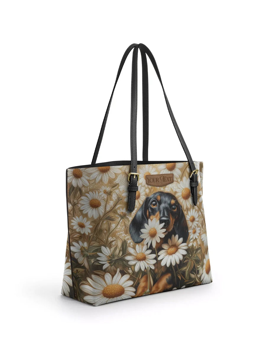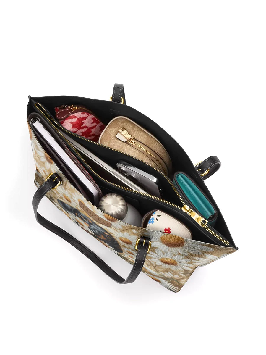DachyCharm Daisy Bloom Personalized Leather Tote Bag