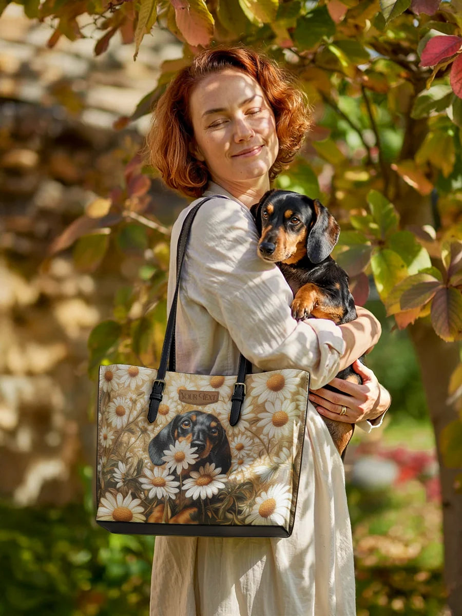 Charming, spirited, and unmistakably yours. The DachyCharm Tote Bag blends timeless elegance with playful dachshund artistry, capturing hearts with every glance. Crafted from premium leather and designed for everyday ease, it’s more than a bag—it’s a joyful expression of your unique bond.