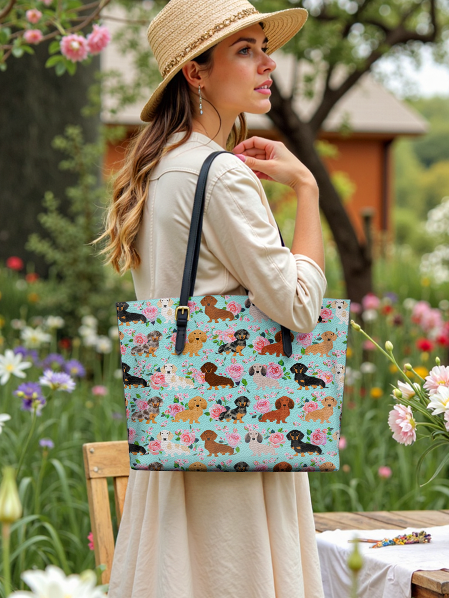 Charming, spirited, and unmistakably yours. The DachyCharm Tote Bag blends timeless elegance with playful dachshund artistry, capturing hearts with every glance. Crafted from premium leather and designed for everyday ease, it’s more than a bag—it’s a joyful expression of your unique bond.