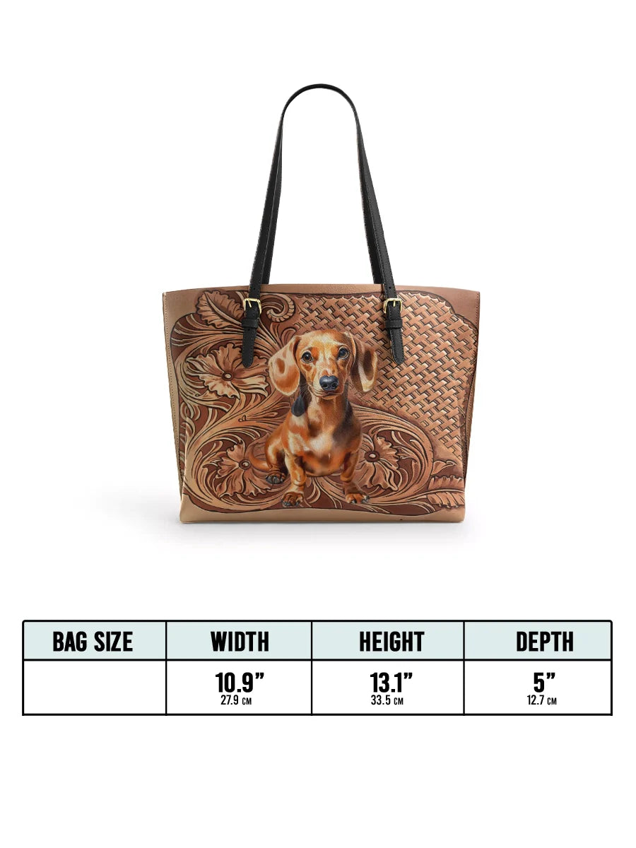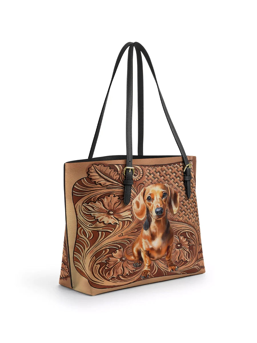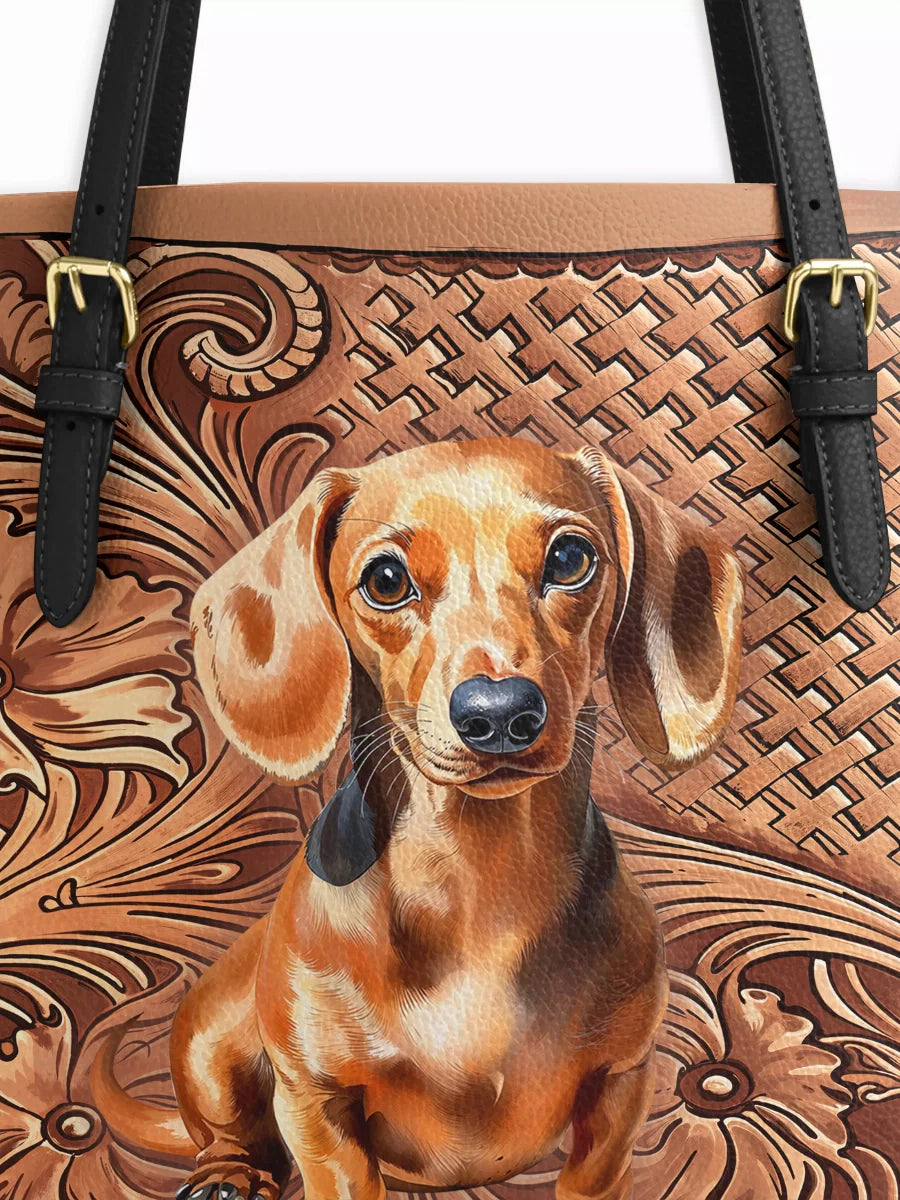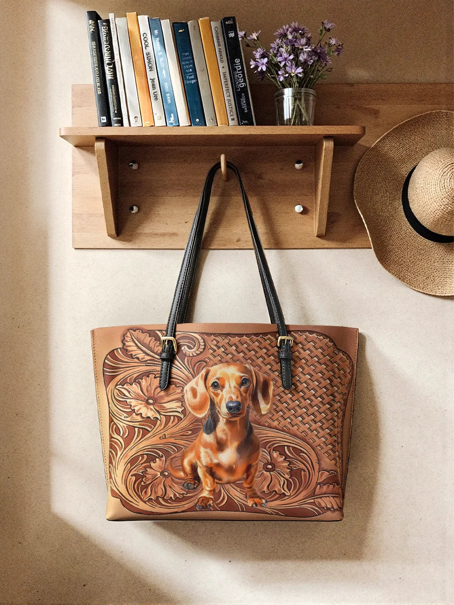 Charming, spirited, and unmistakably yours. The DachyCharm Tote Bag blends timeless elegance with playful dachshund artistry, capturing hearts with every glance. Crafted from premium leather and designed for everyday ease, it’s more than a bag—it’s a joyful expression of your unique bond.