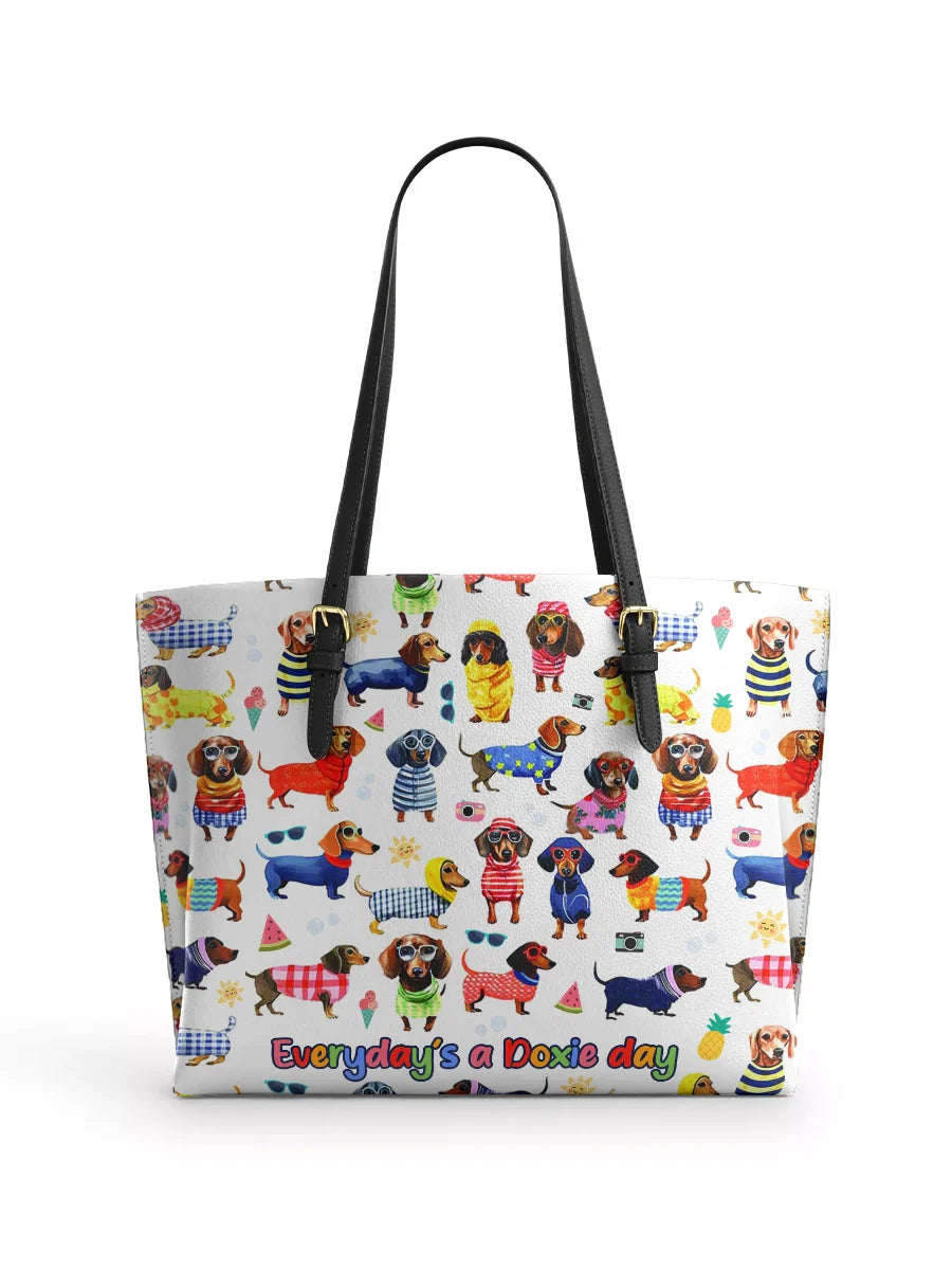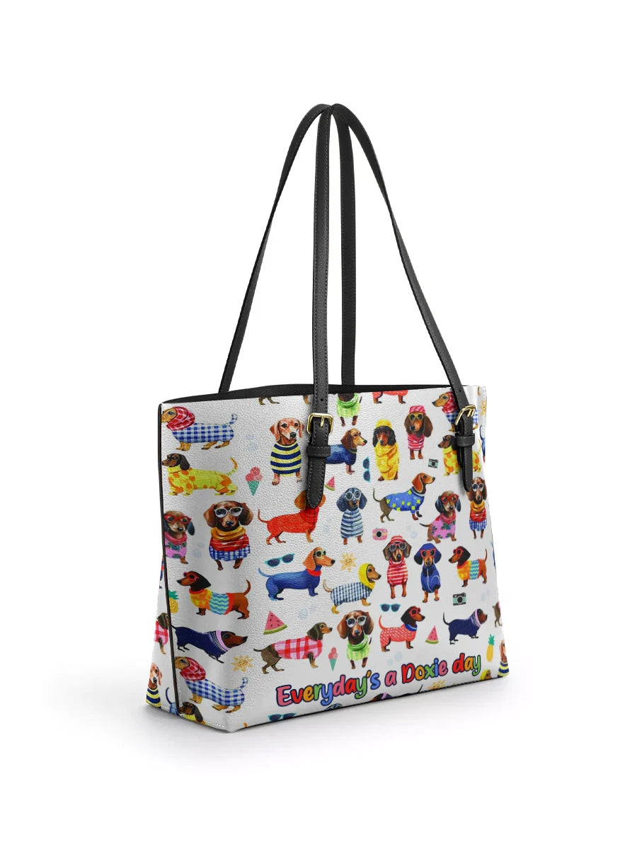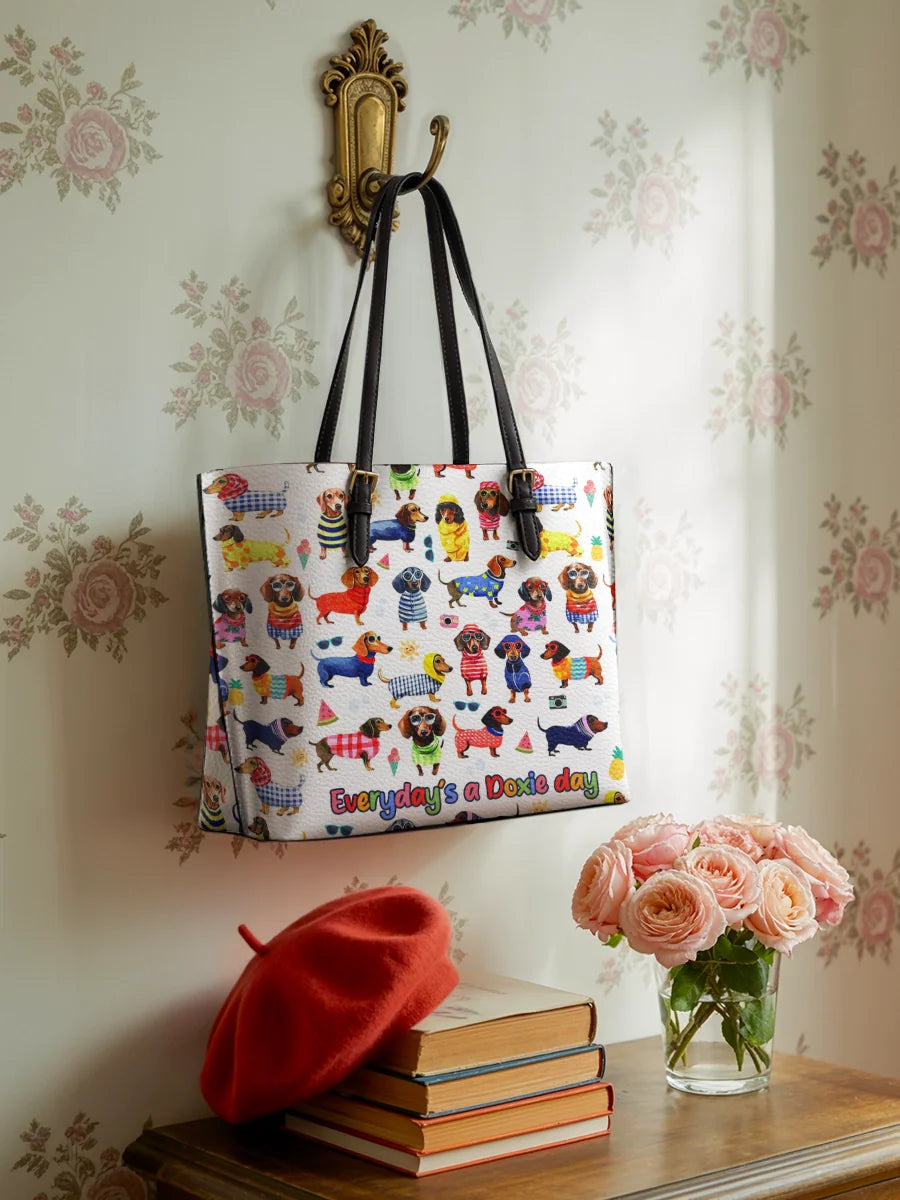 DachyCharm Doxie Holiday Leather Tote Bag