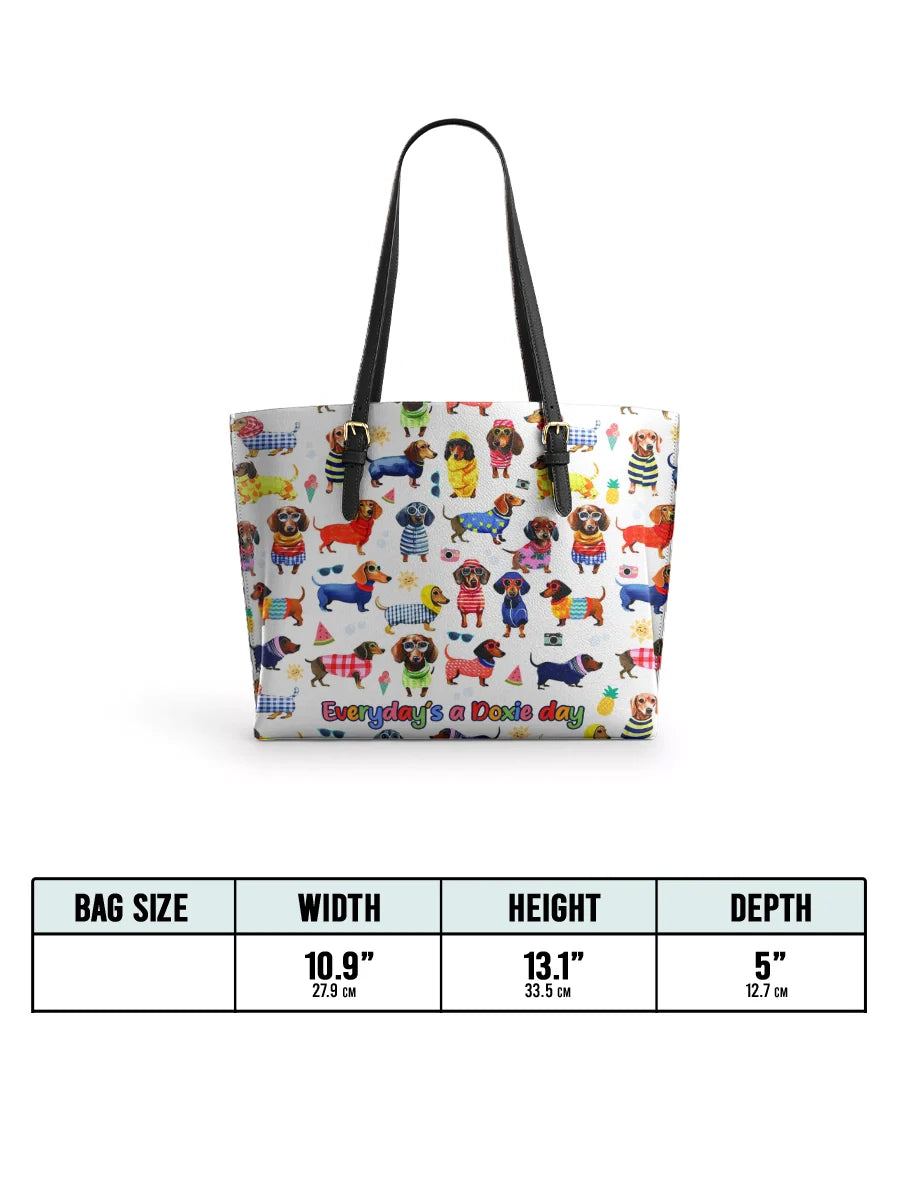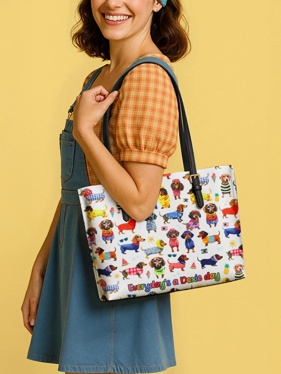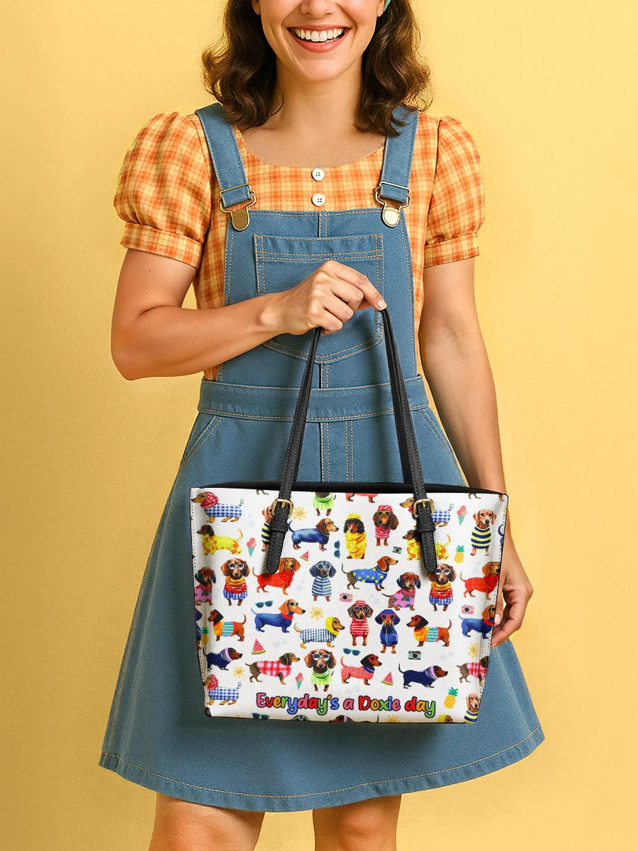 DachyCharm Doxie Holiday Leather Tote Bag