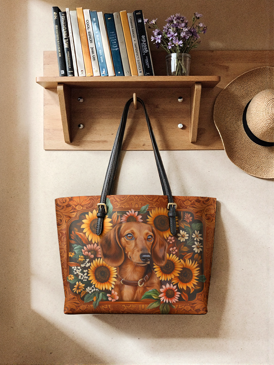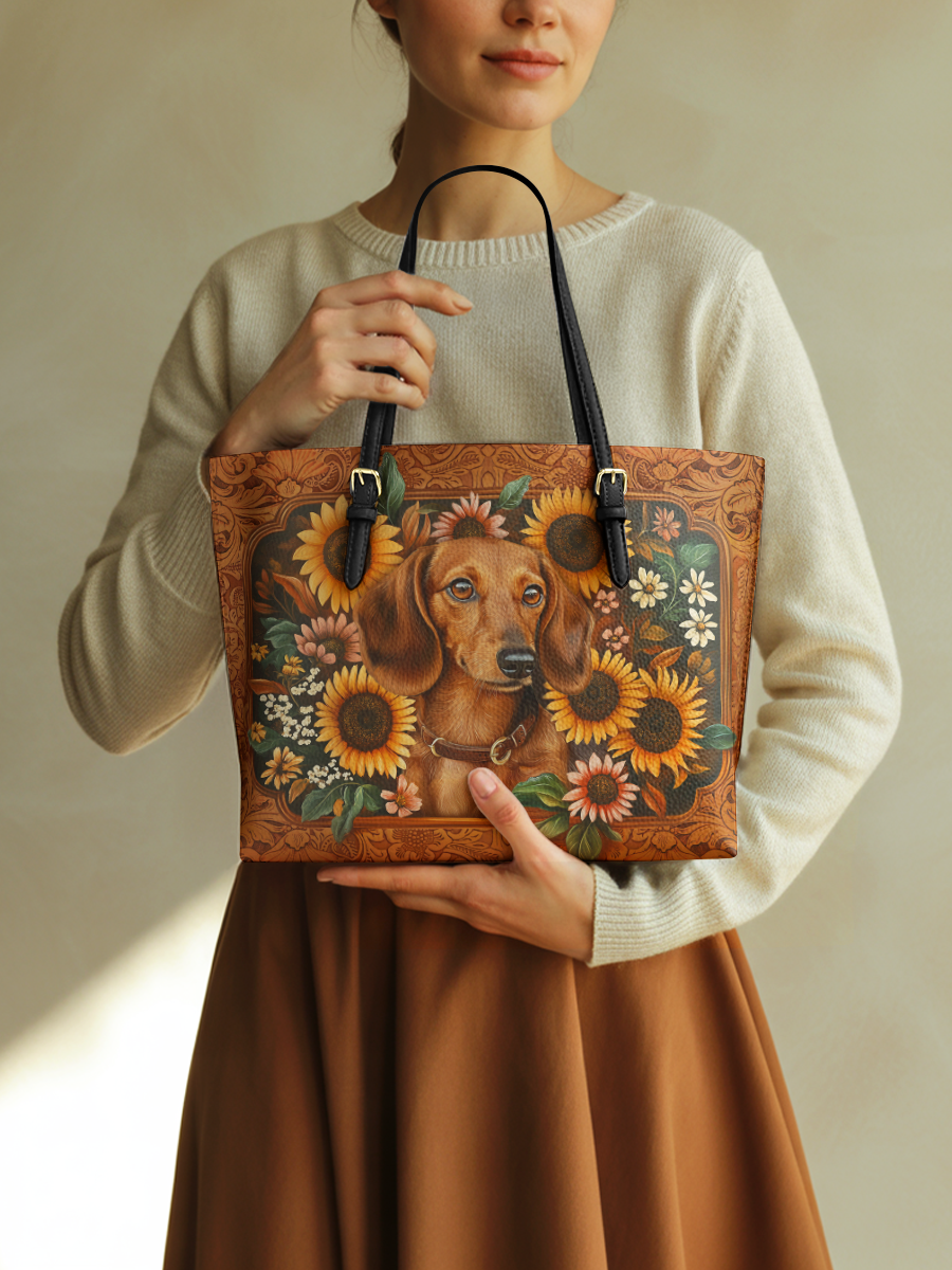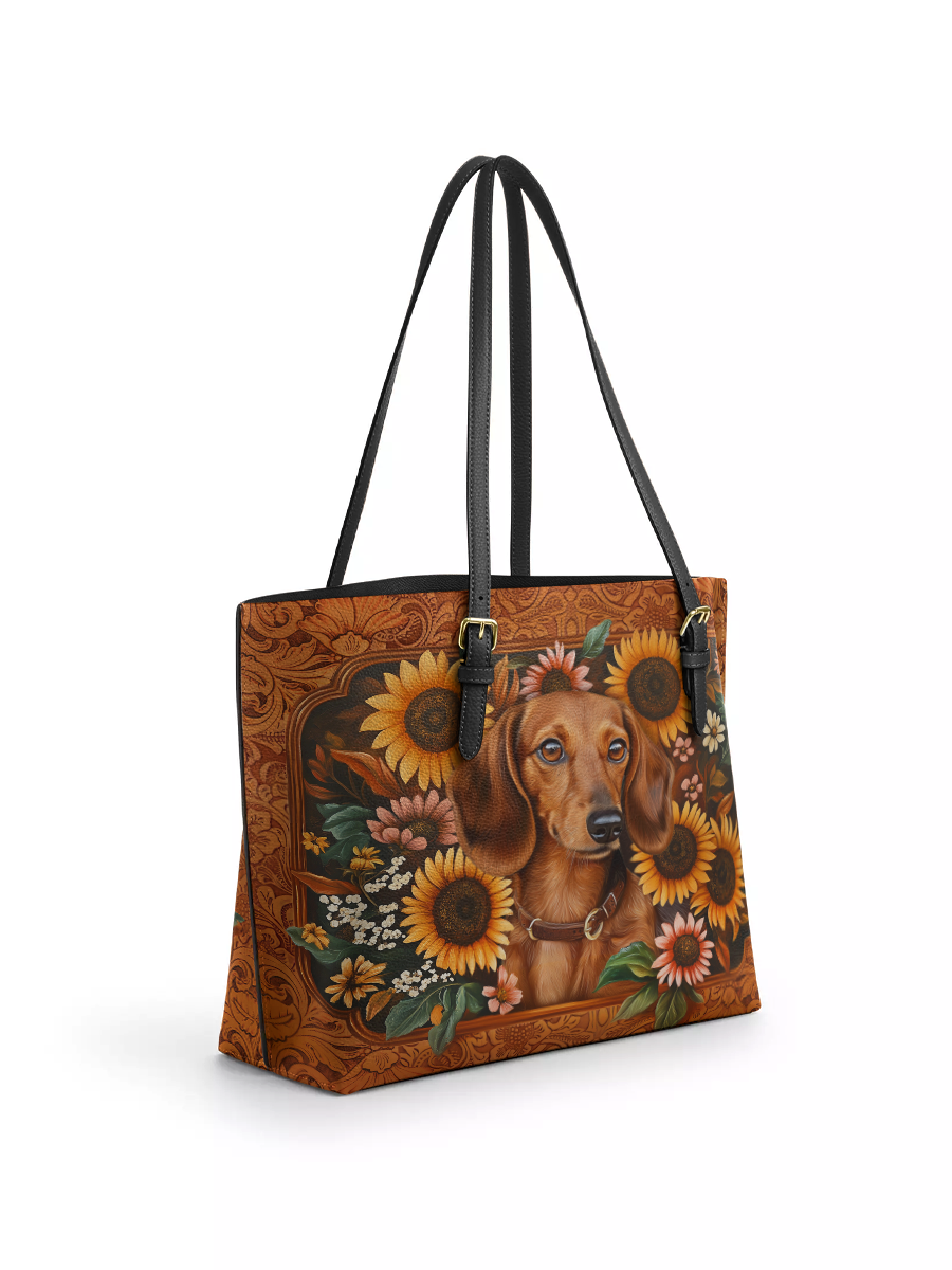 DachyCharm Prairie Doxie Leather Tote Bag