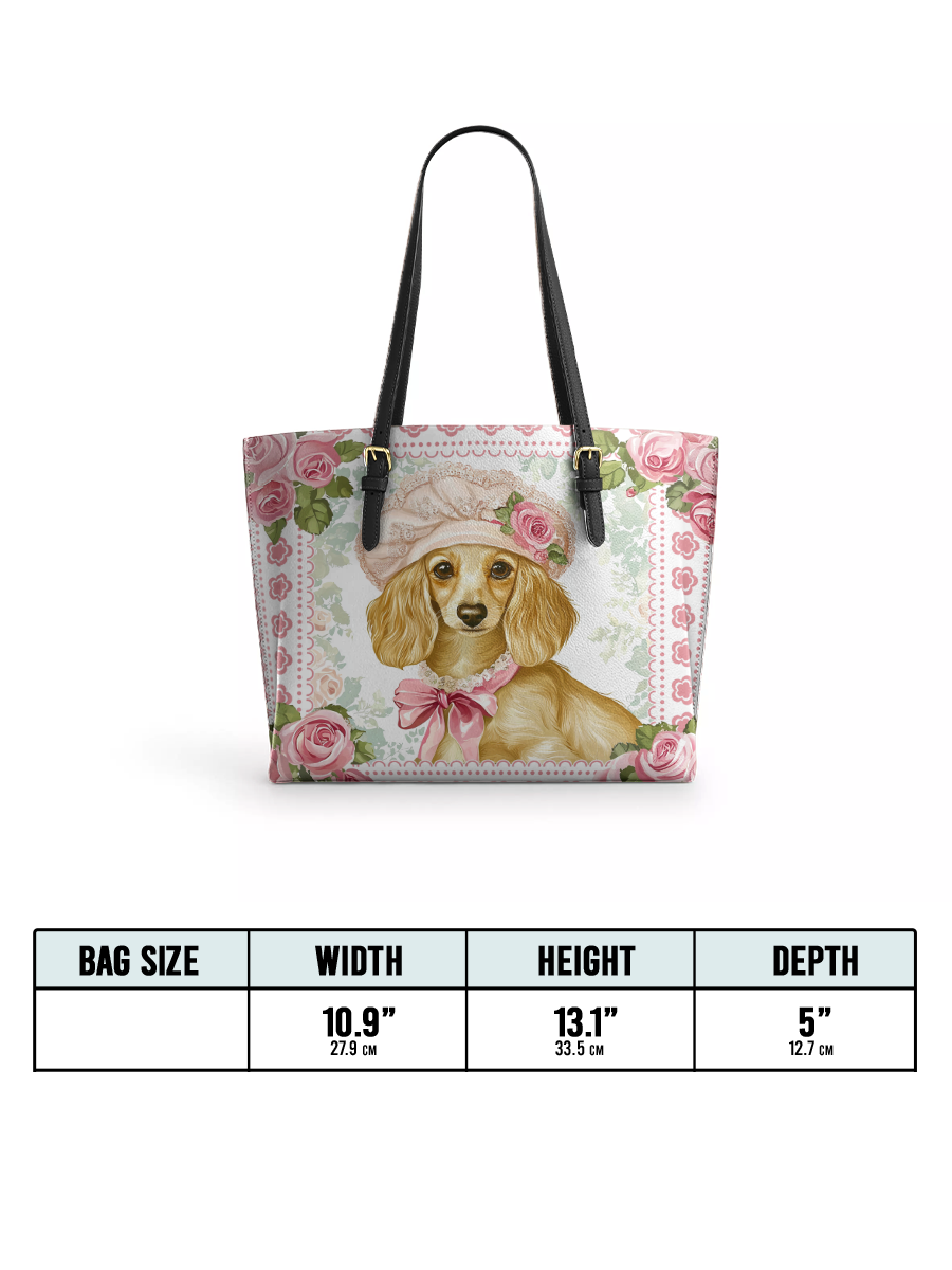 Charming, spirited, and unmistakably yours. The DachyCharm Tote Bag blends timeless elegance with playful dachshund artistry, capturing hearts with every glance. Crafted from premium leather and designed for everyday ease, it’s more than a bag—it’s a joyful expression of your unique bond.