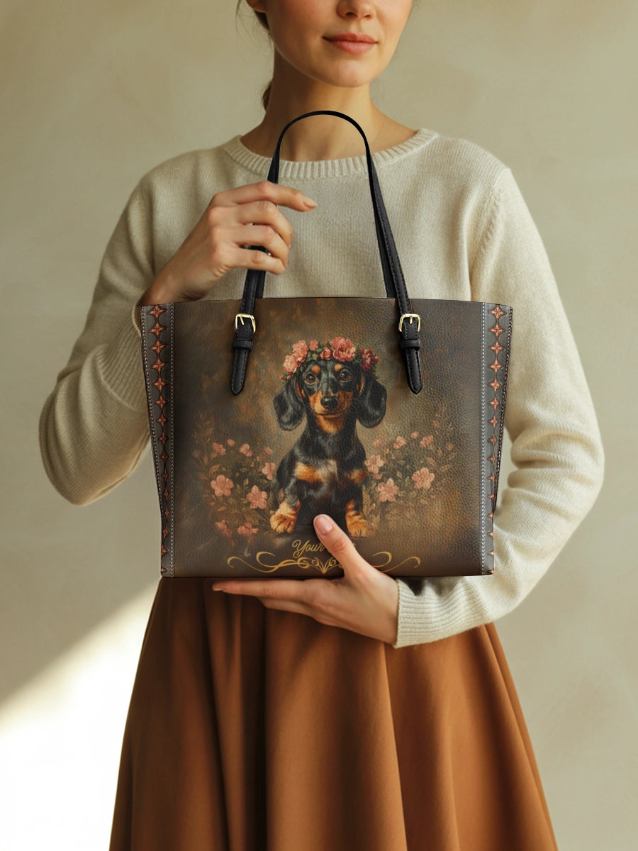 Charming, spirited, and unmistakably yours. The DachyCharm Tote Bag blends timeless elegance with playful dachshund artistry, capturing hearts with every glance. Crafted from premium leather and designed for everyday ease, it’s more than a bag—it’s a joyful expression of your unique bond.