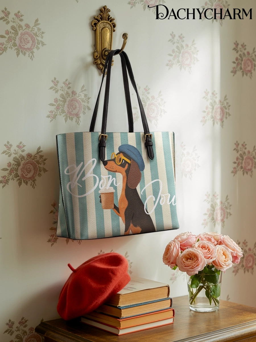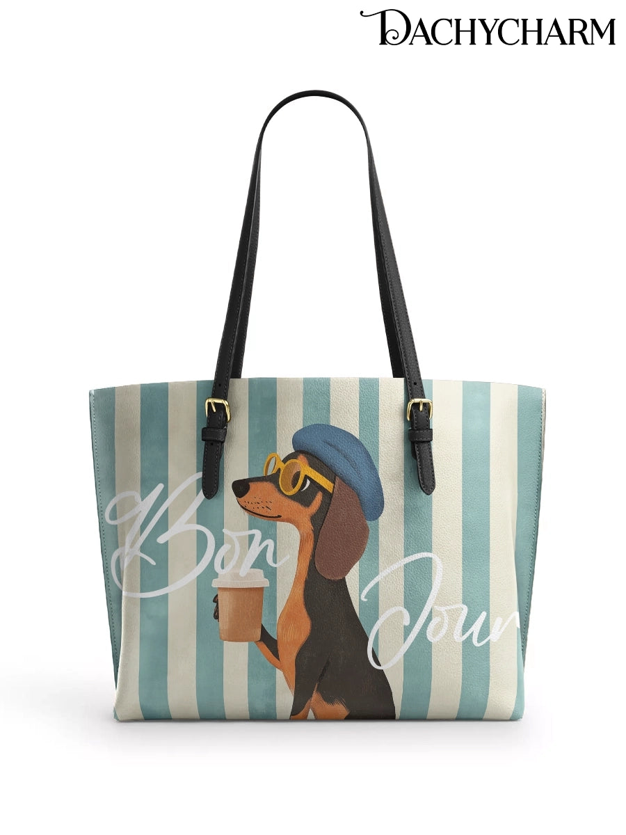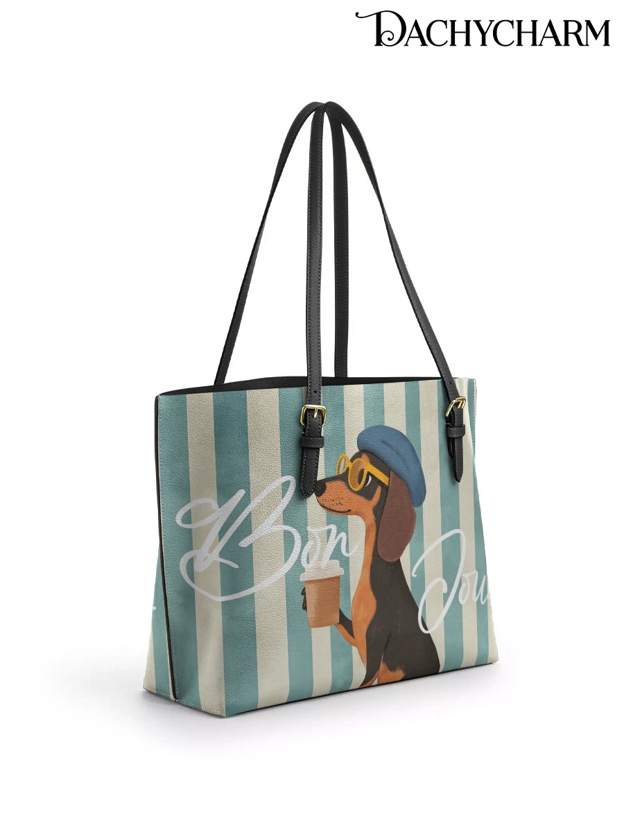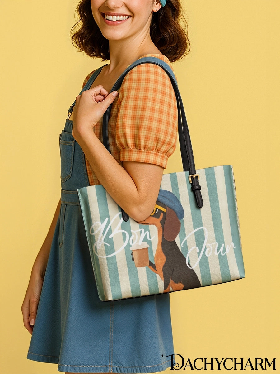 DachyCharm Say Bonjour Leather Tote Bag