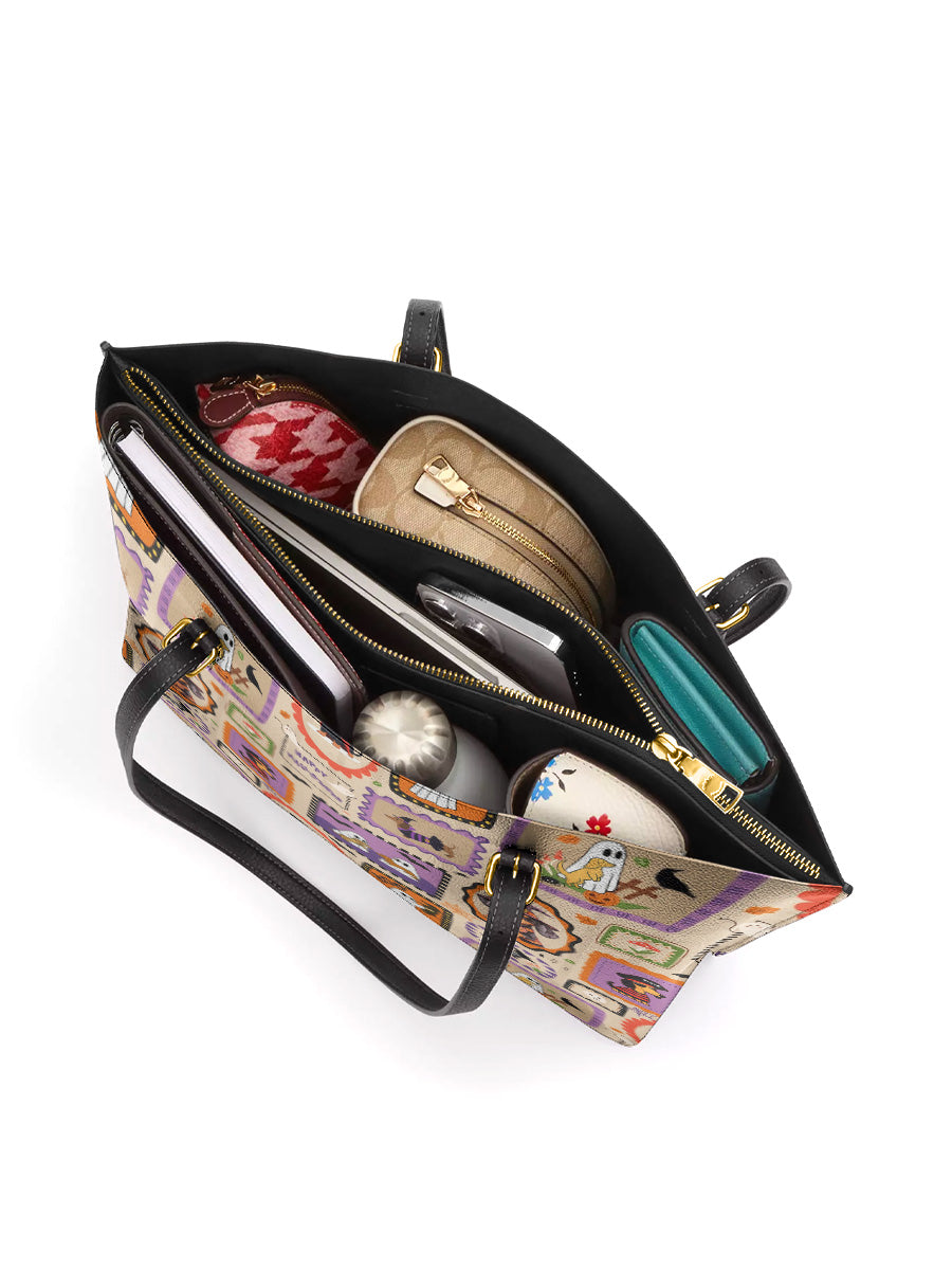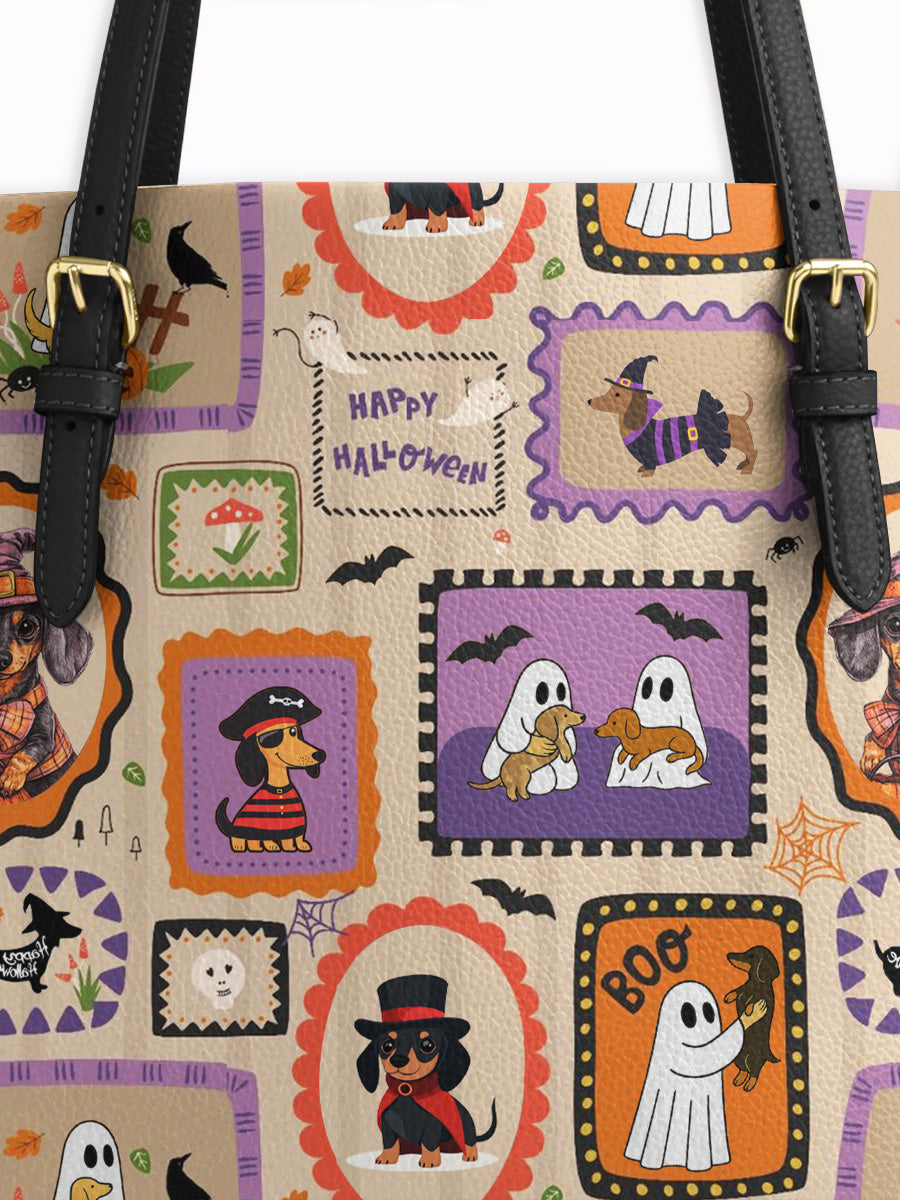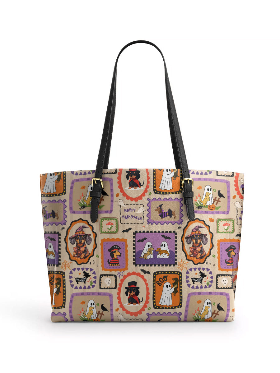DachyCharm Spooky Pup Parade Leather Tote Bag