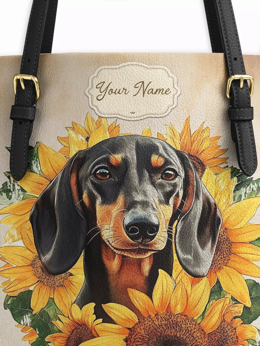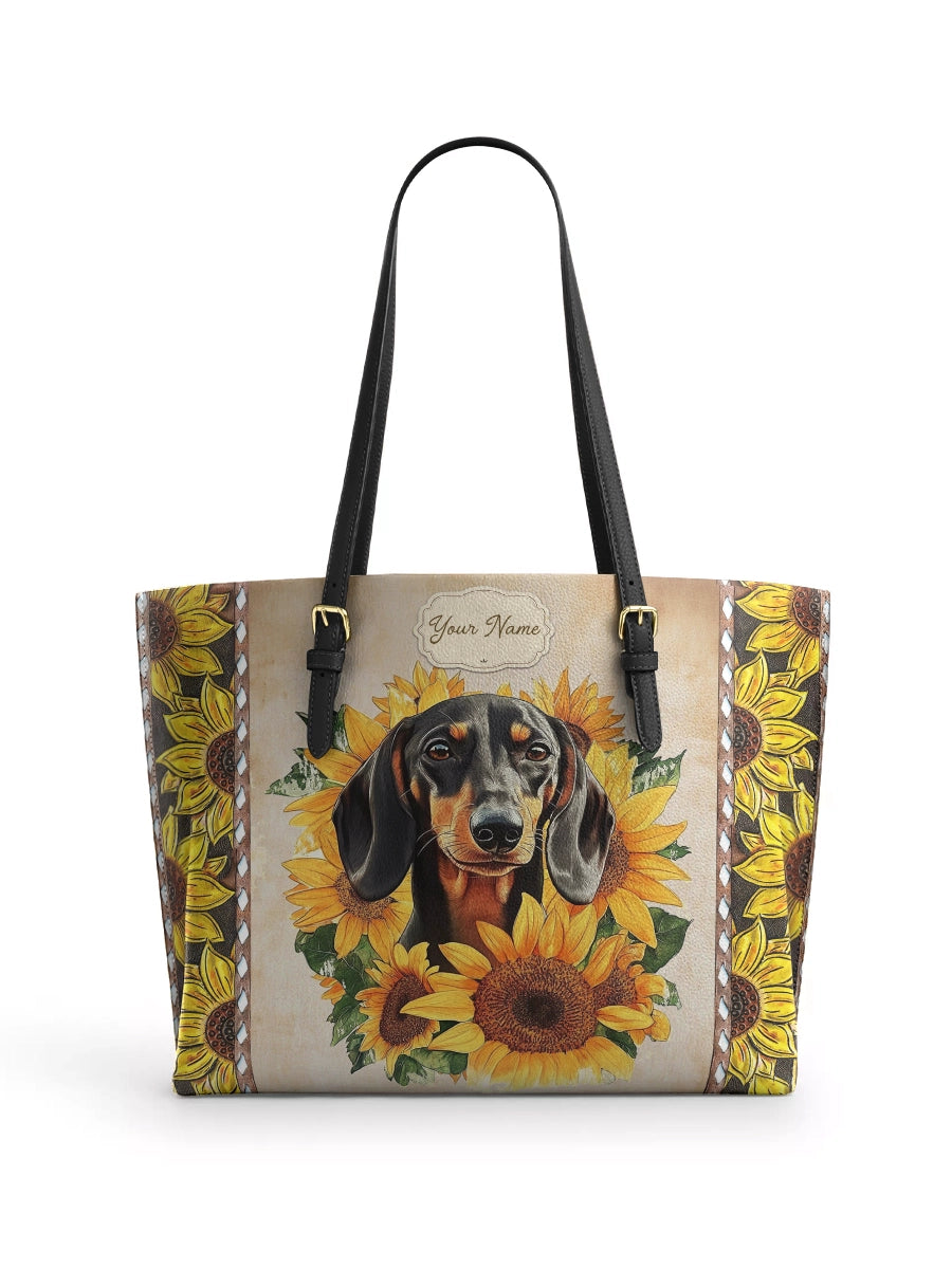 DachyCharm Sunbeam Pup Personalized Leather Tote Bag