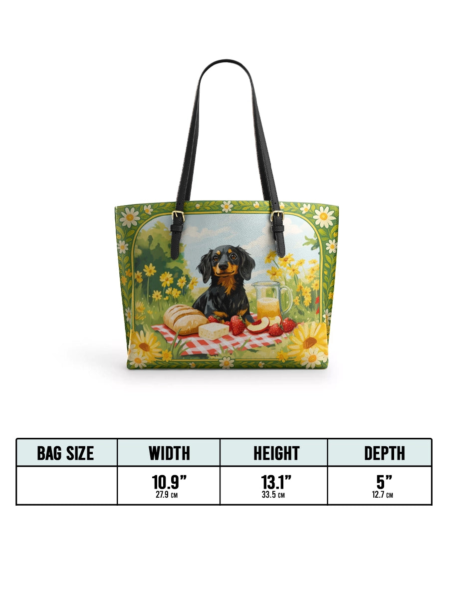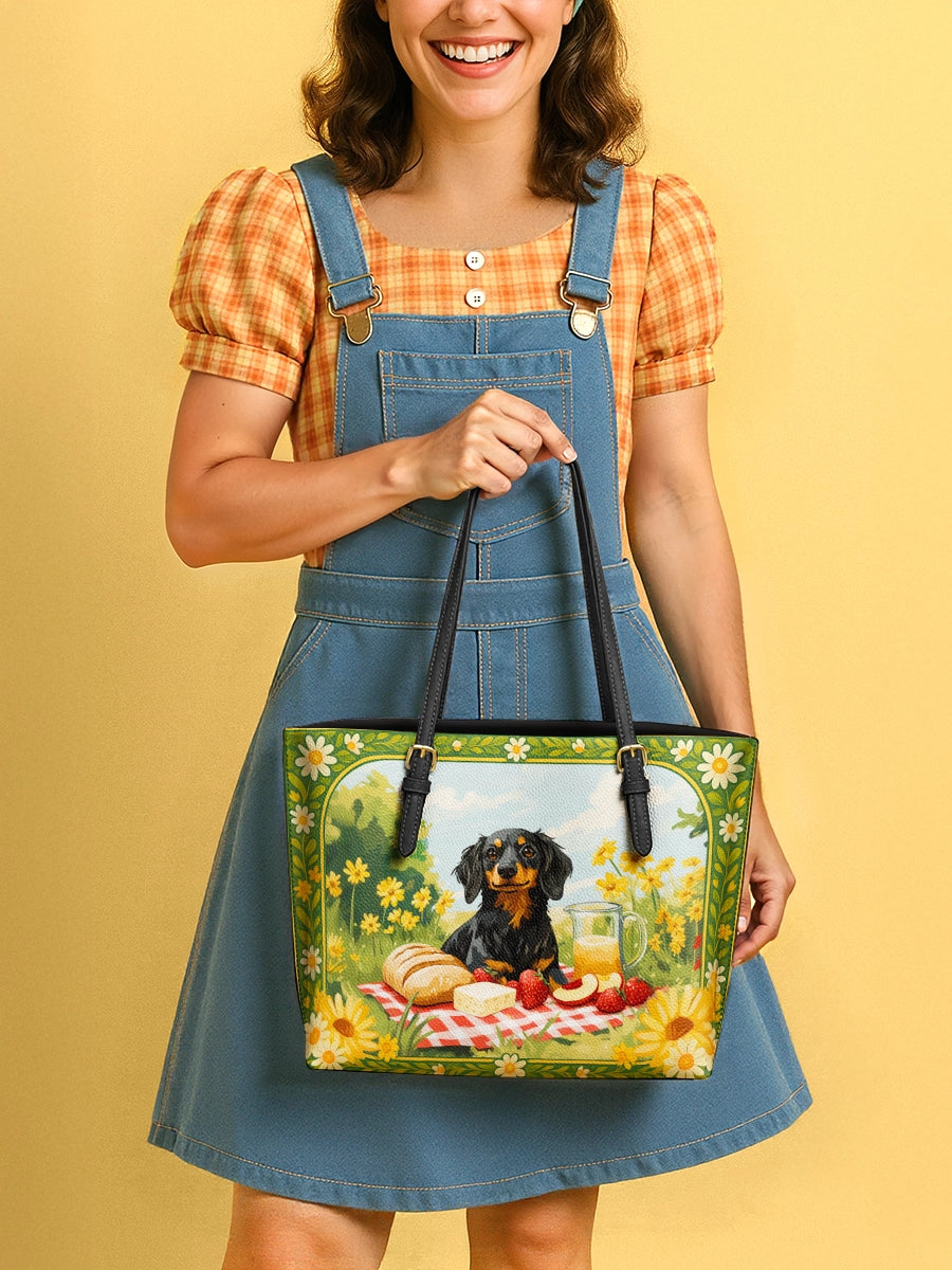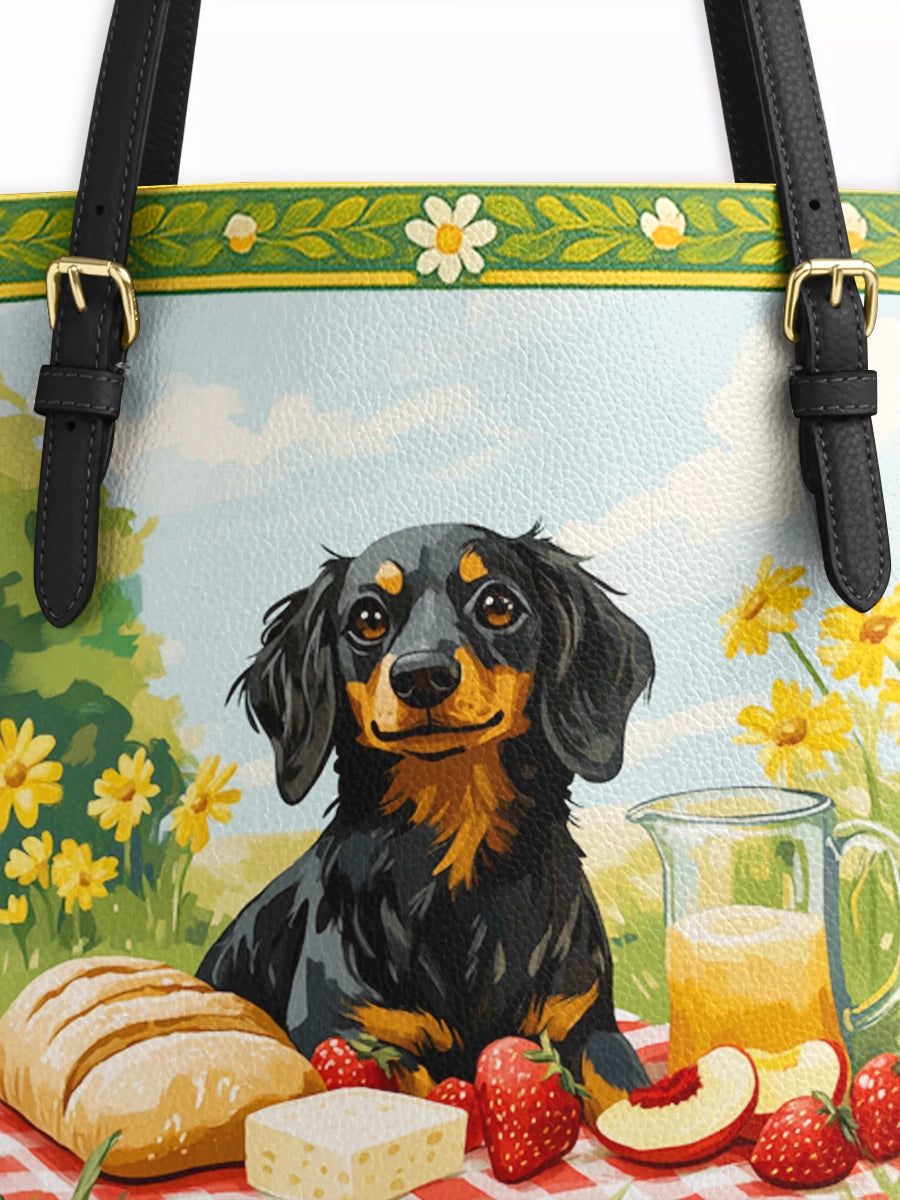 DachyCharm Sunny Picnic Pup Leather Tote Bag