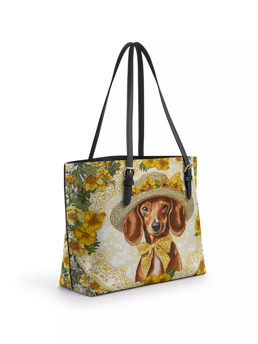 DachyCharm Sunshine Doxie Leather Tote Bag