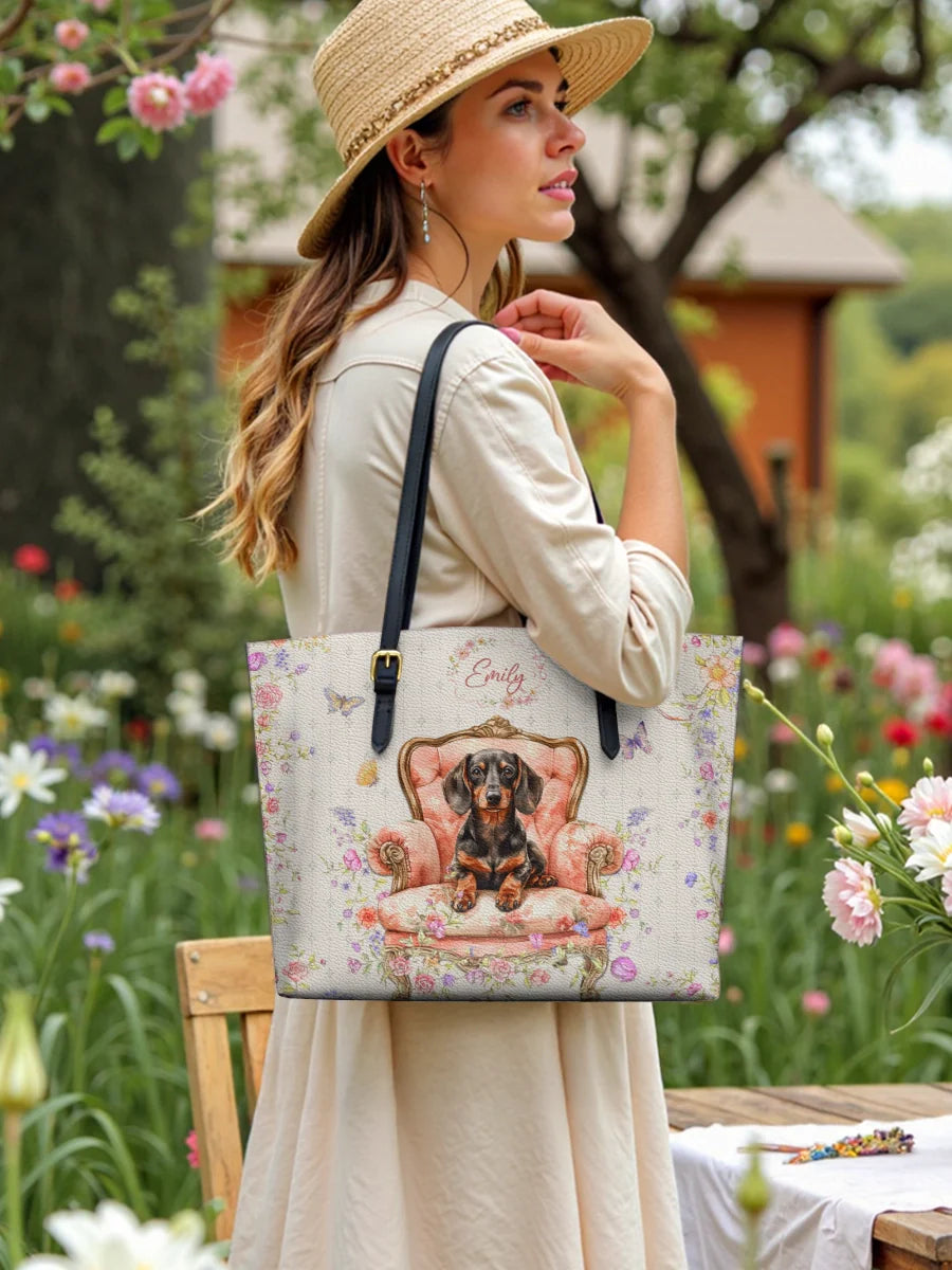 Charming, spirited, and unmistakably yours. The DachyCharm Tote Bag blends timeless elegance with playful dachshund artistry, capturing hearts with every glance. Crafted from premium leather and designed for everyday ease, it’s more than a bag—it’s a joyful expression of your unique bond.