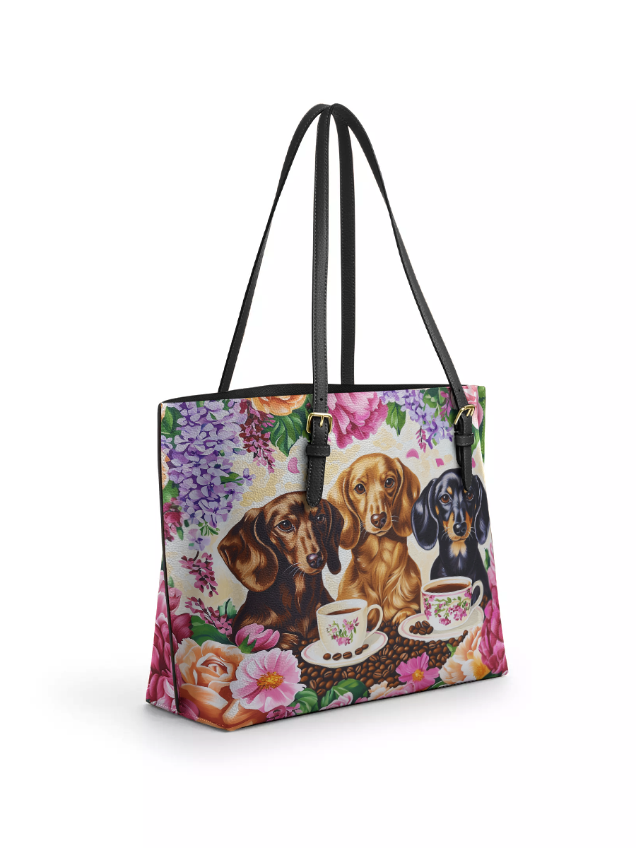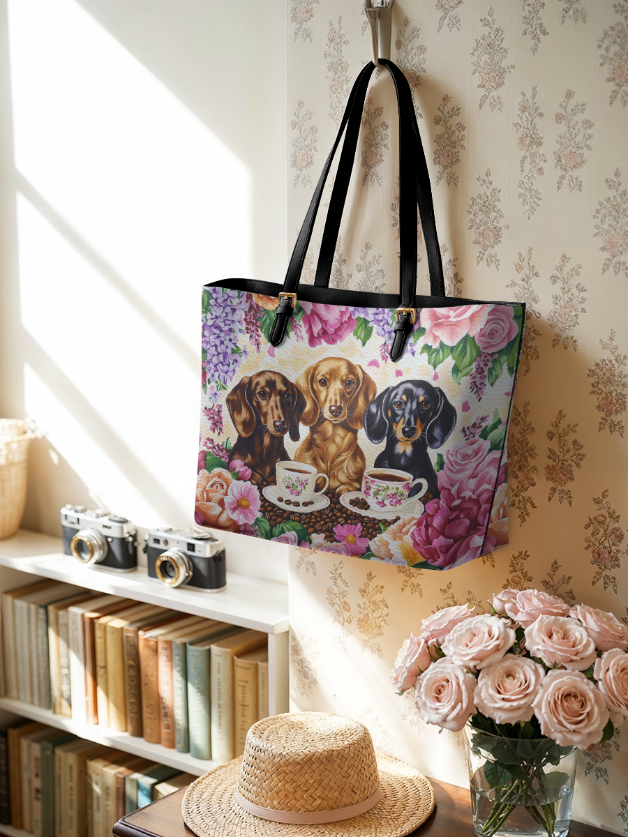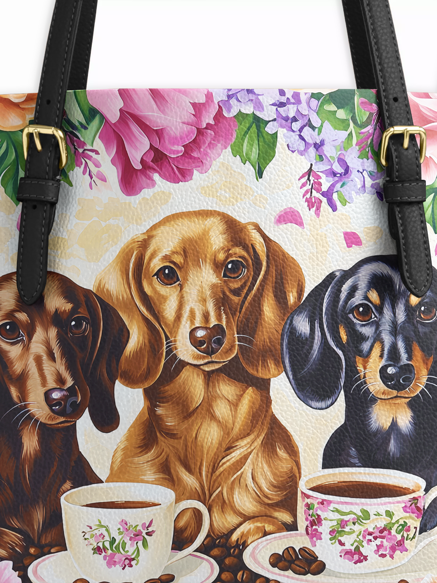 DachyCharm Weenie Coffee Leather Tote Bag