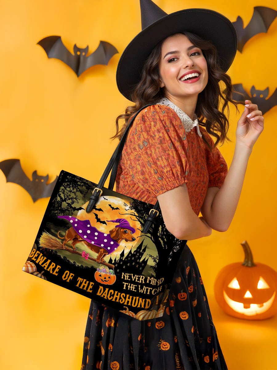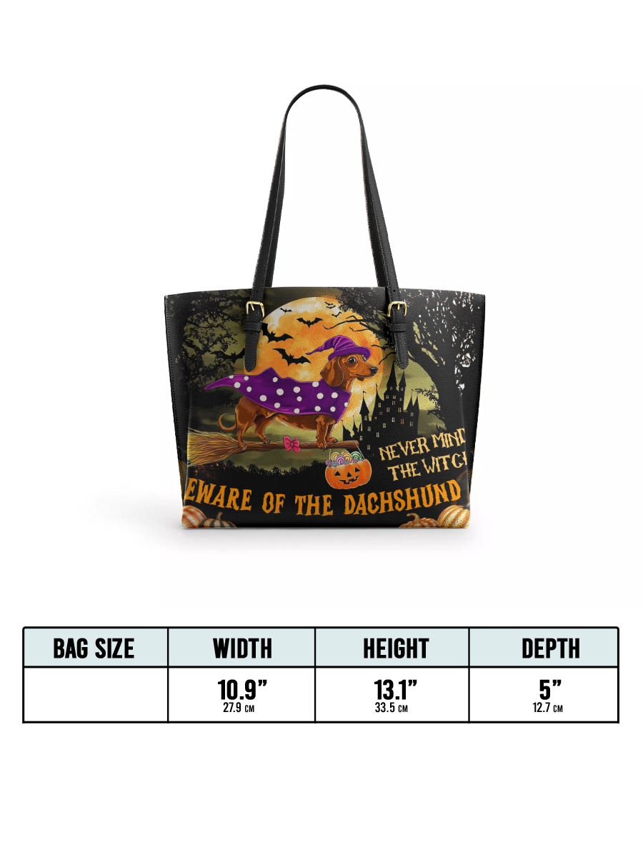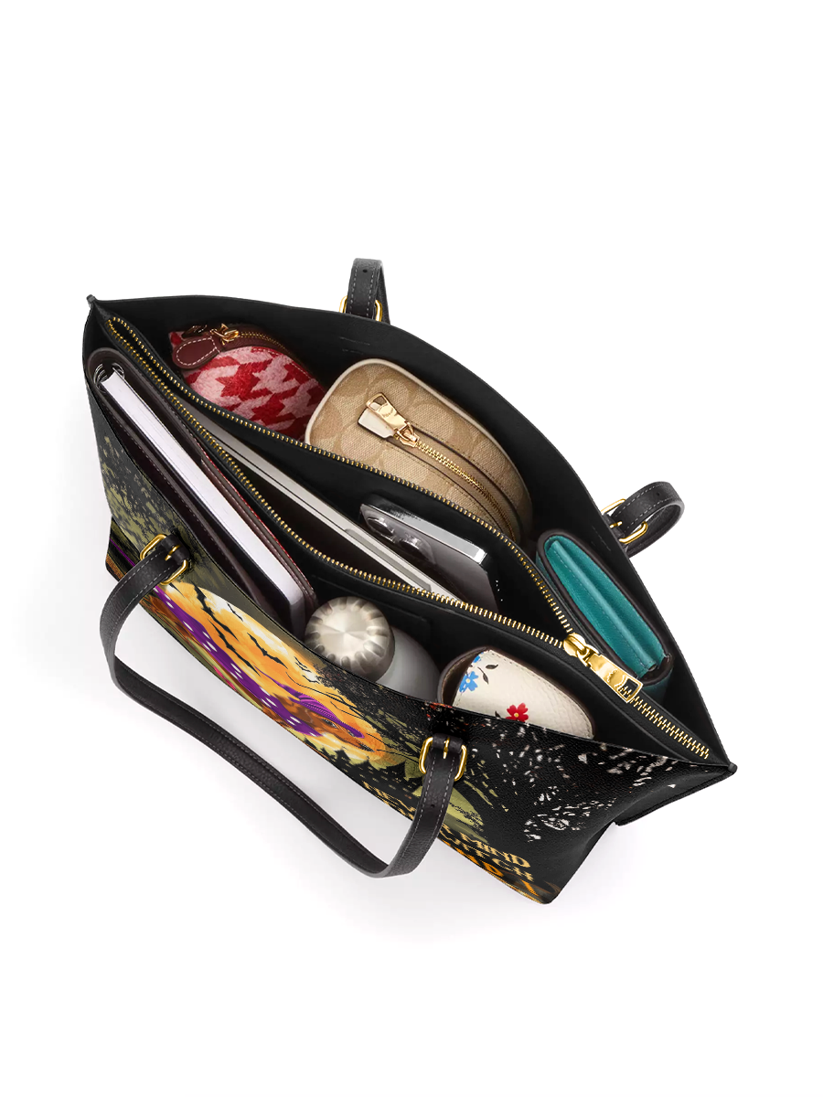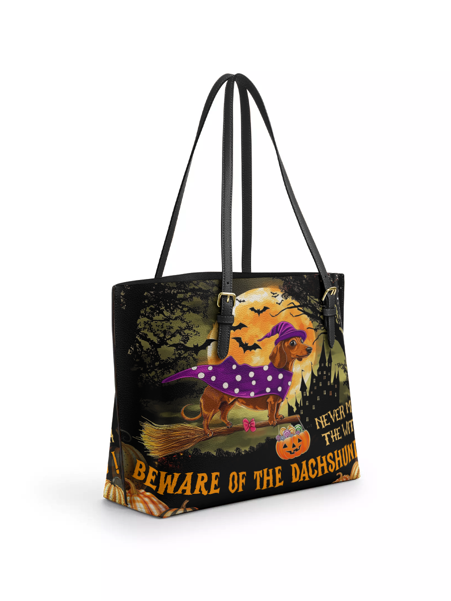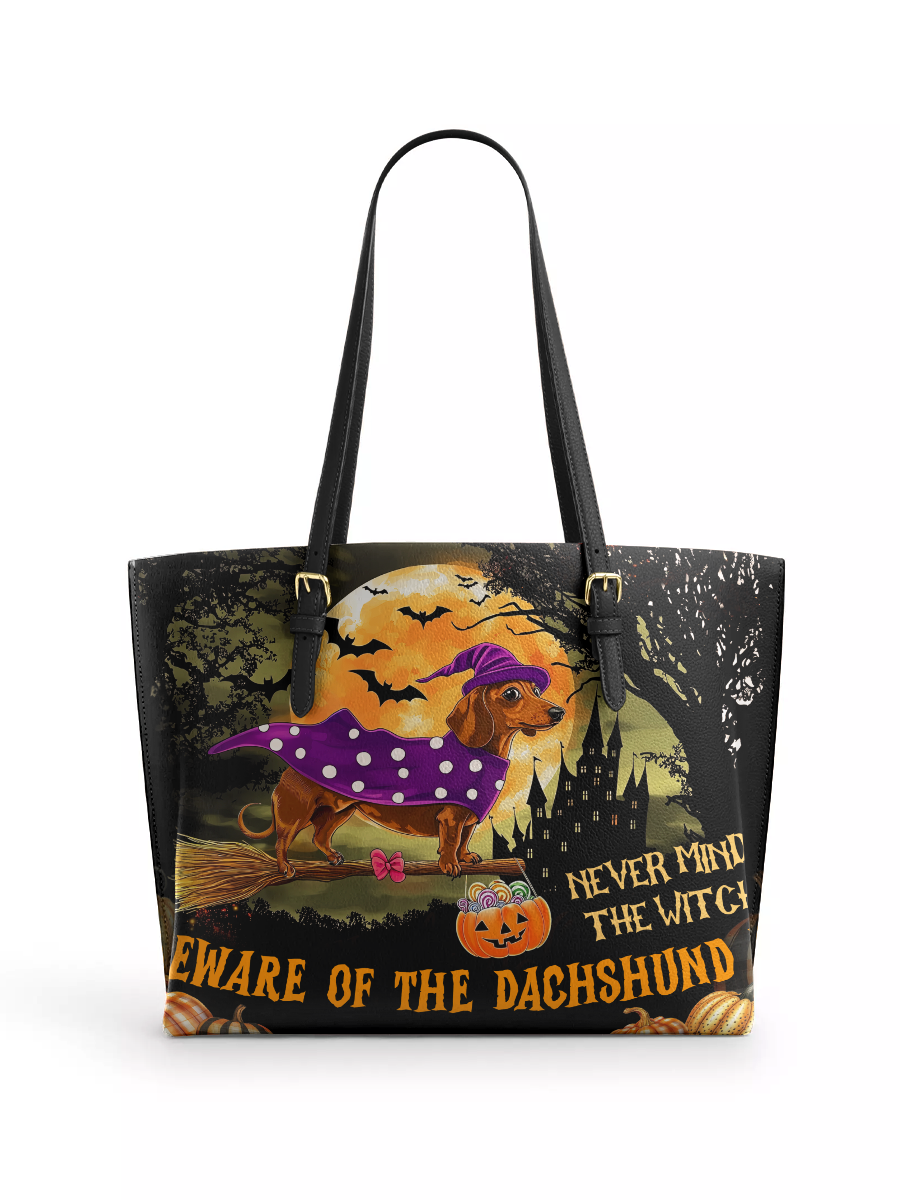 DachyCharm Witchy Warning Leather Tote Bag