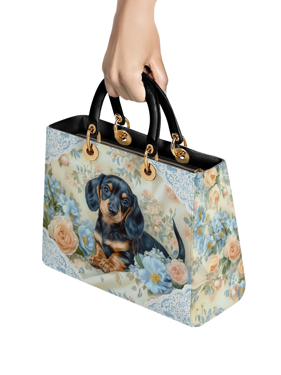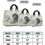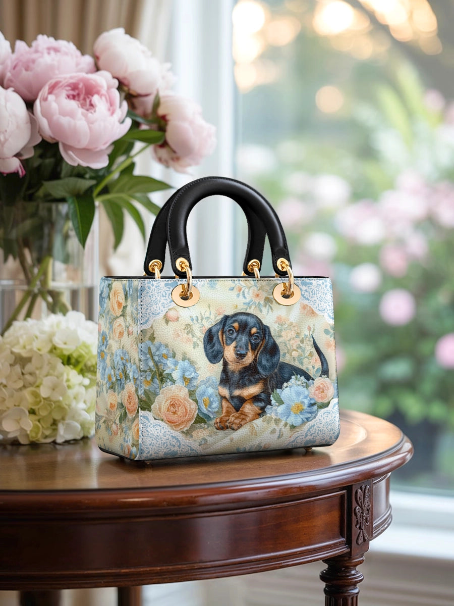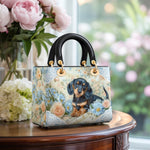 The Lady Leather Bag by DachyCharm brings timeless elegance to everyday moments. With its structured silhouette, sturdy top handles, and charming details, it’s the perfect blend of grace and personality — made for dachshund lovers who adore a touch of sophistication.