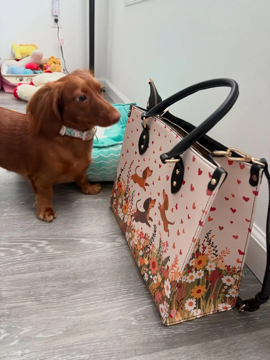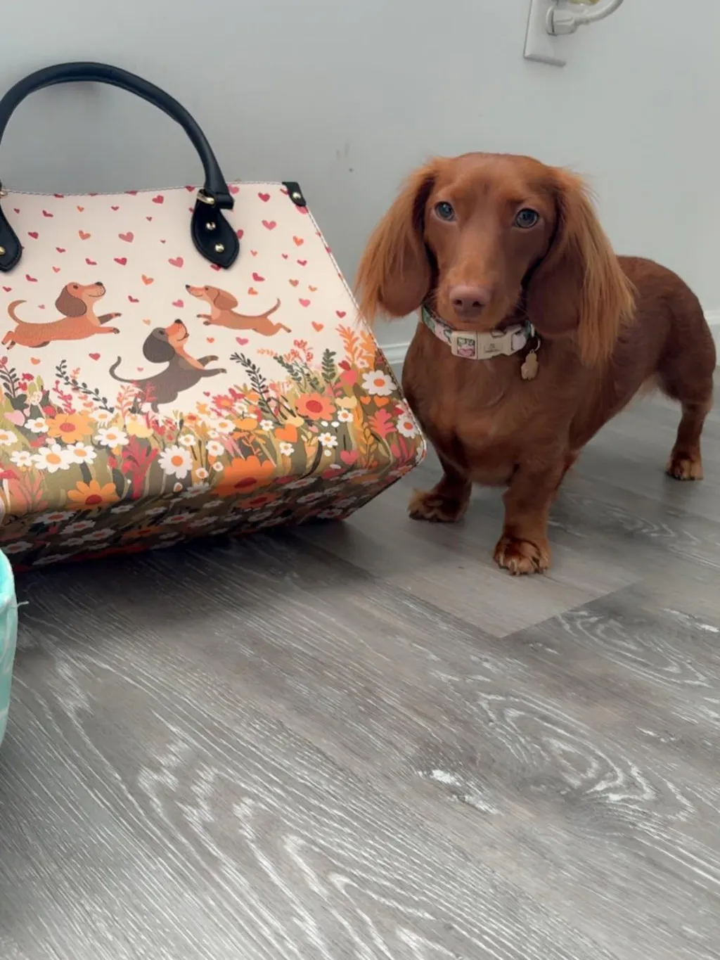 Absolutely love this bag! The colors are so vibrant and the dachshund design is adorable. Dolly clearly approves!