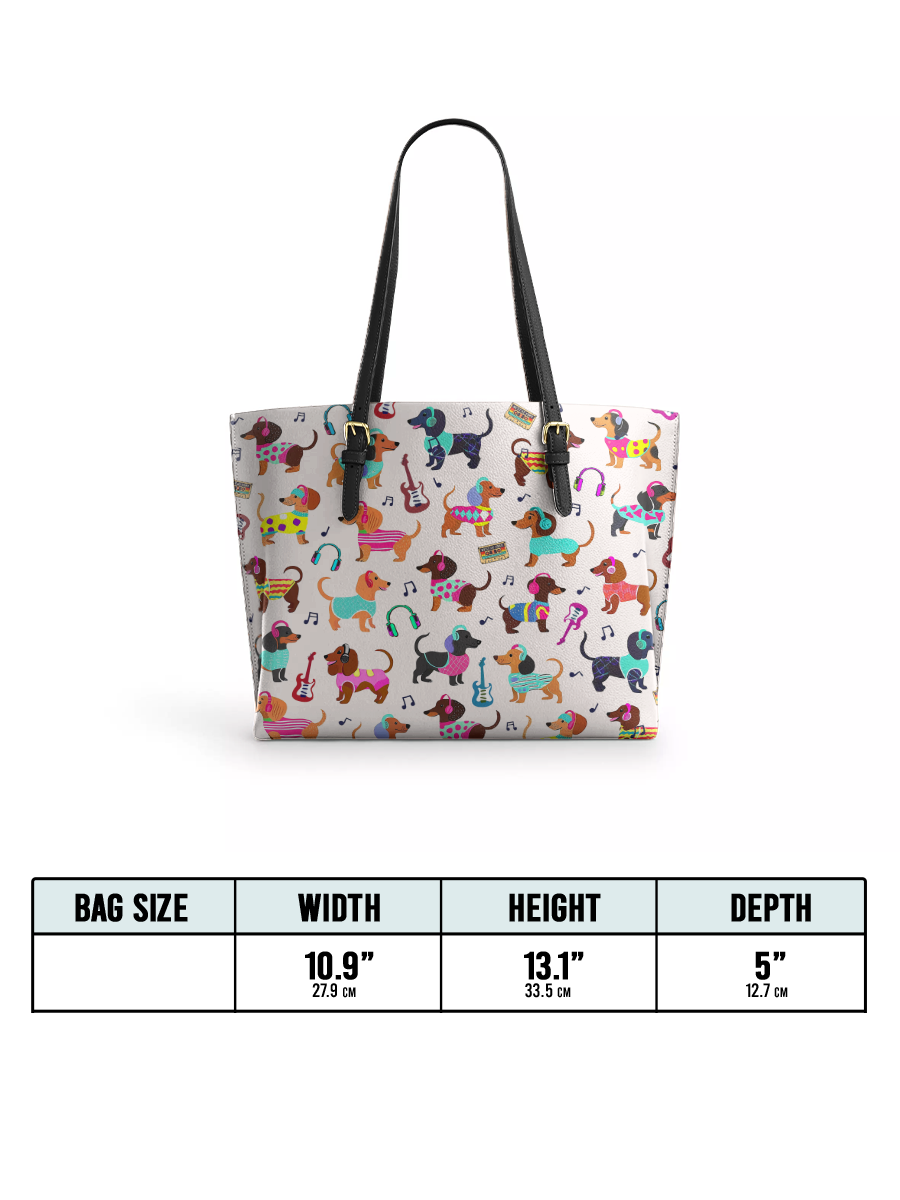 DachyCharm Dachshund Disco Leather Tote Bag