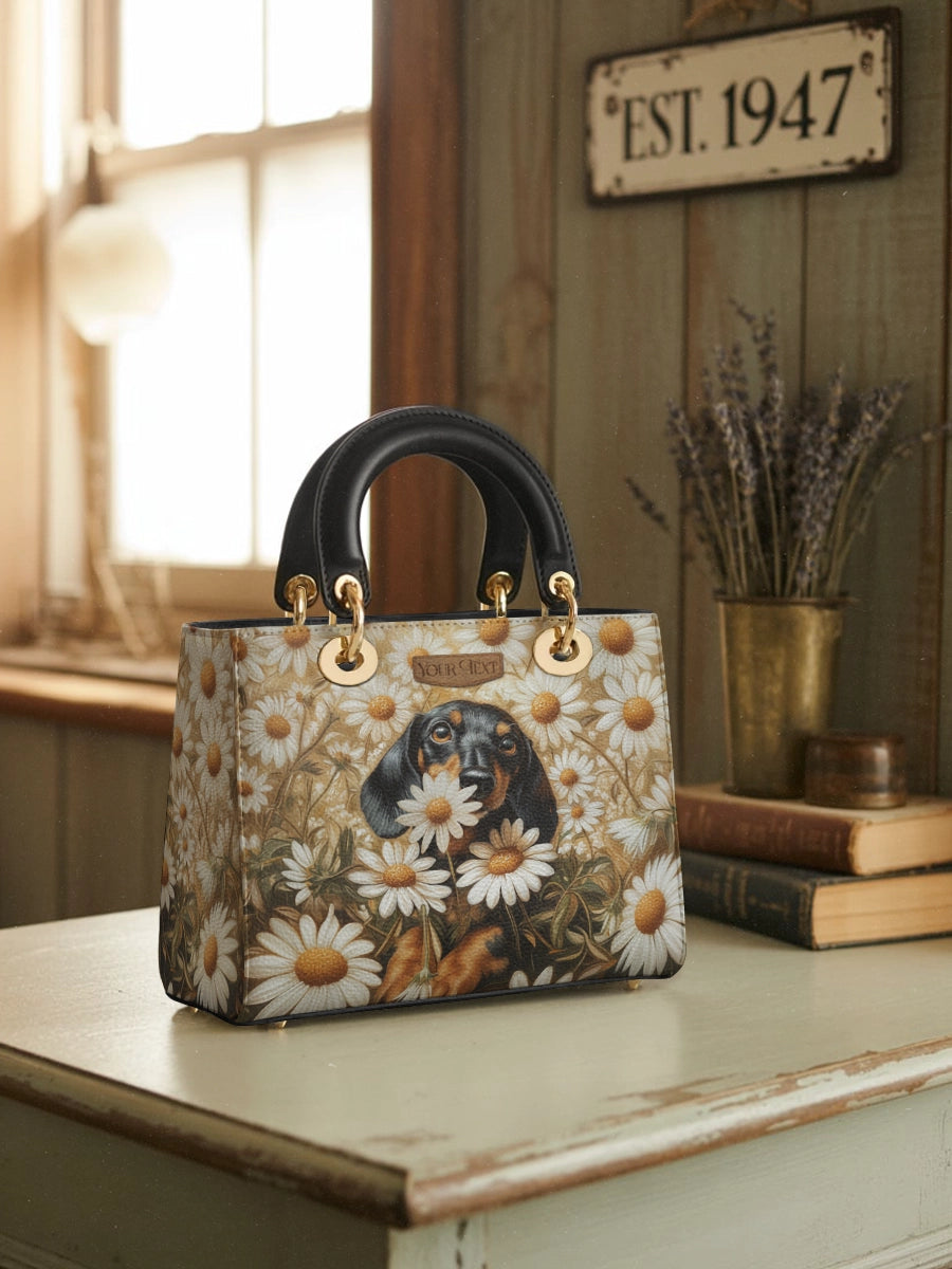 The Lady Leather Bag by DachyCharm brings timeless elegance to everyday moments. With its structured silhouette, sturdy top handles, and charming details, it’s the perfect blend of grace and personality — made for dachshund lovers who adore a touch of sophistication.