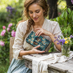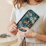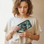 The Daisy Meadow Doxie leather clutch captures the same enchanting dachshund and daisy scene in a compact, graceful form. Its lush, floral artwork adds warmth and elegance to every step you take, while the size makes it ideal for quick outings or evening gatherings.