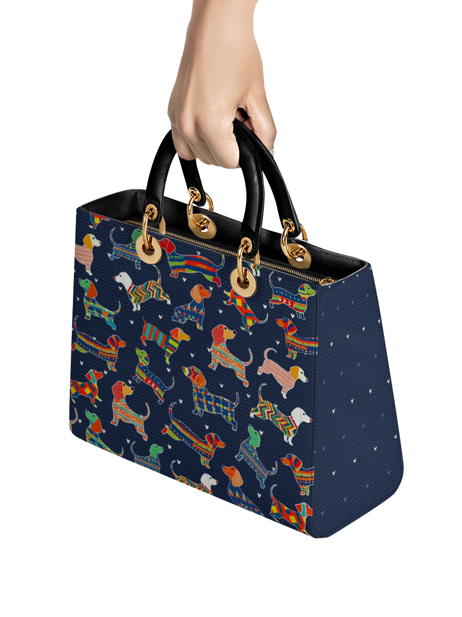 The Lady Leather Bag by DachyCharm brings timeless elegance to everyday moments. With its structured silhouette, sturdy top handles, and charming details, it’s the perfect blend of grace and personality — made for dachshund lovers who adore a touch of sophistication.