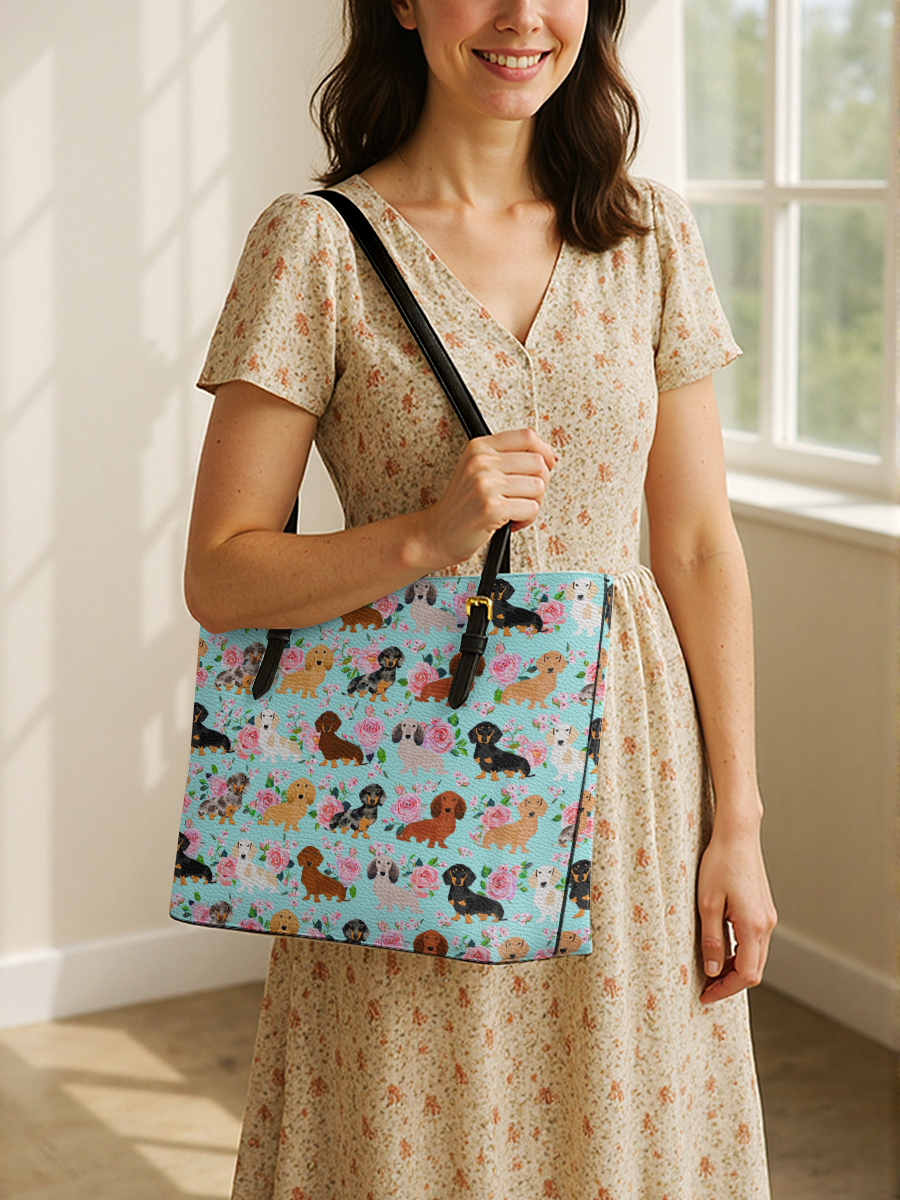 Charming, spirited, and unmistakably yours. The DachyCharm Tote Bag blends timeless elegance with playful dachshund artistry, capturing hearts with every glance. Crafted from premium leather and designed for everyday ease, it’s more than a bag—it’s a joyful expression of your unique bond.