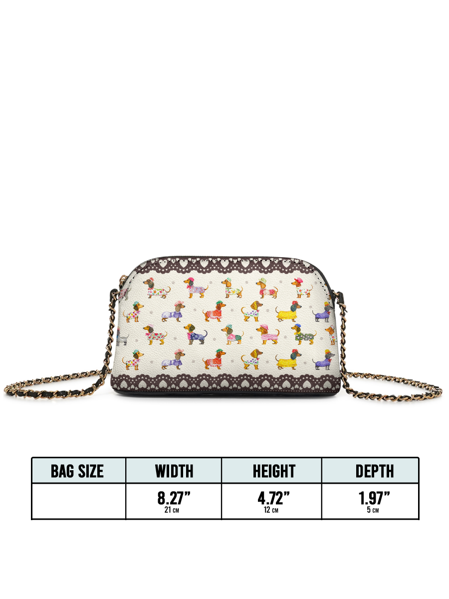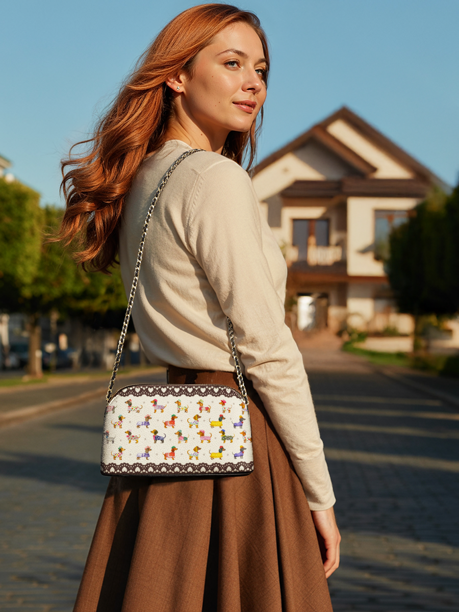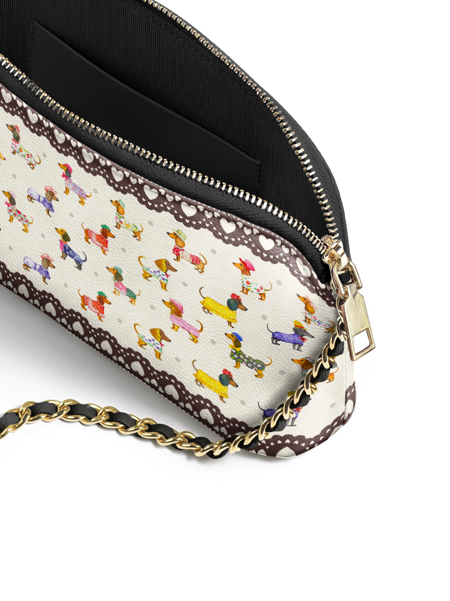 Thoughtfully crafted with charm and character, the DachyCharm Crossbody Bag blends playful spirit with timeless design. Its petite silhouette, sleek chain strap, and whimsical dachshund artwork turn everyday outings into moments of joy and self-expression