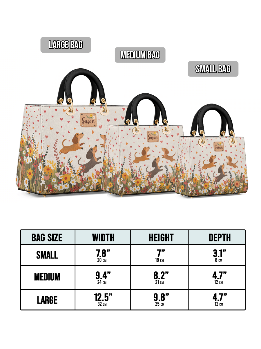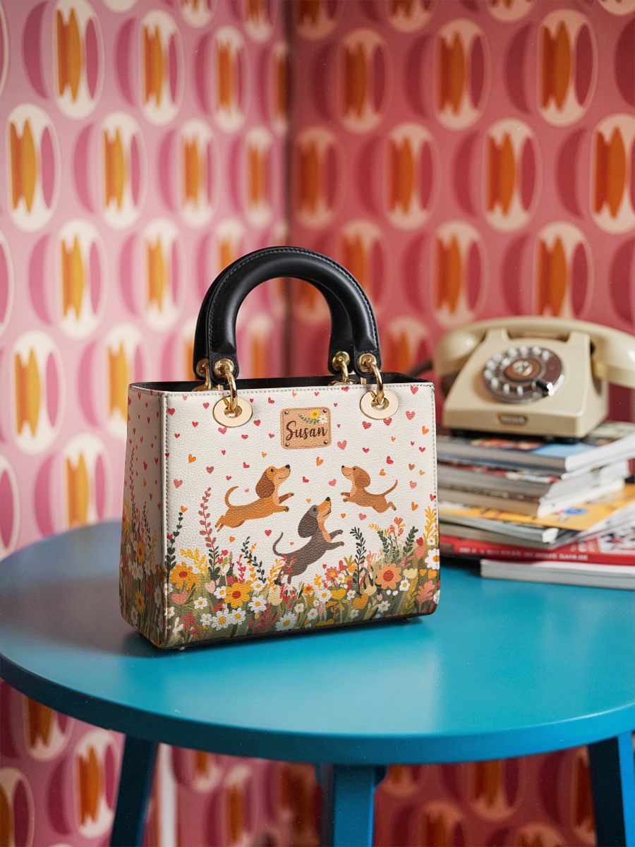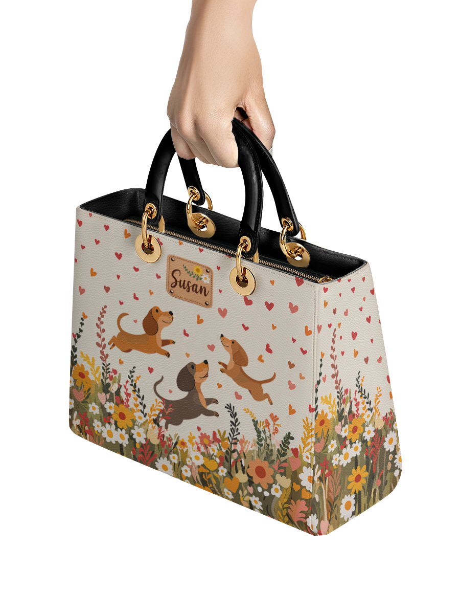 DachyCharm Floral Dachshund With Heart Personalized Lady Leather Bag