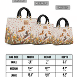 LARGE (12.5'' x 9.8'' x 4.7'') Our most spacious choice — this roomy bag is built for everything you need in a day (and more). It comfortably fits your laptop, planner, notebook, clutch wallet, sunglasses, lipstick, hand cream, and even a magazine or tablet. Whether you're headed to the office, café, or a weekend getaway, the large size lets you carry it all with effortless style.