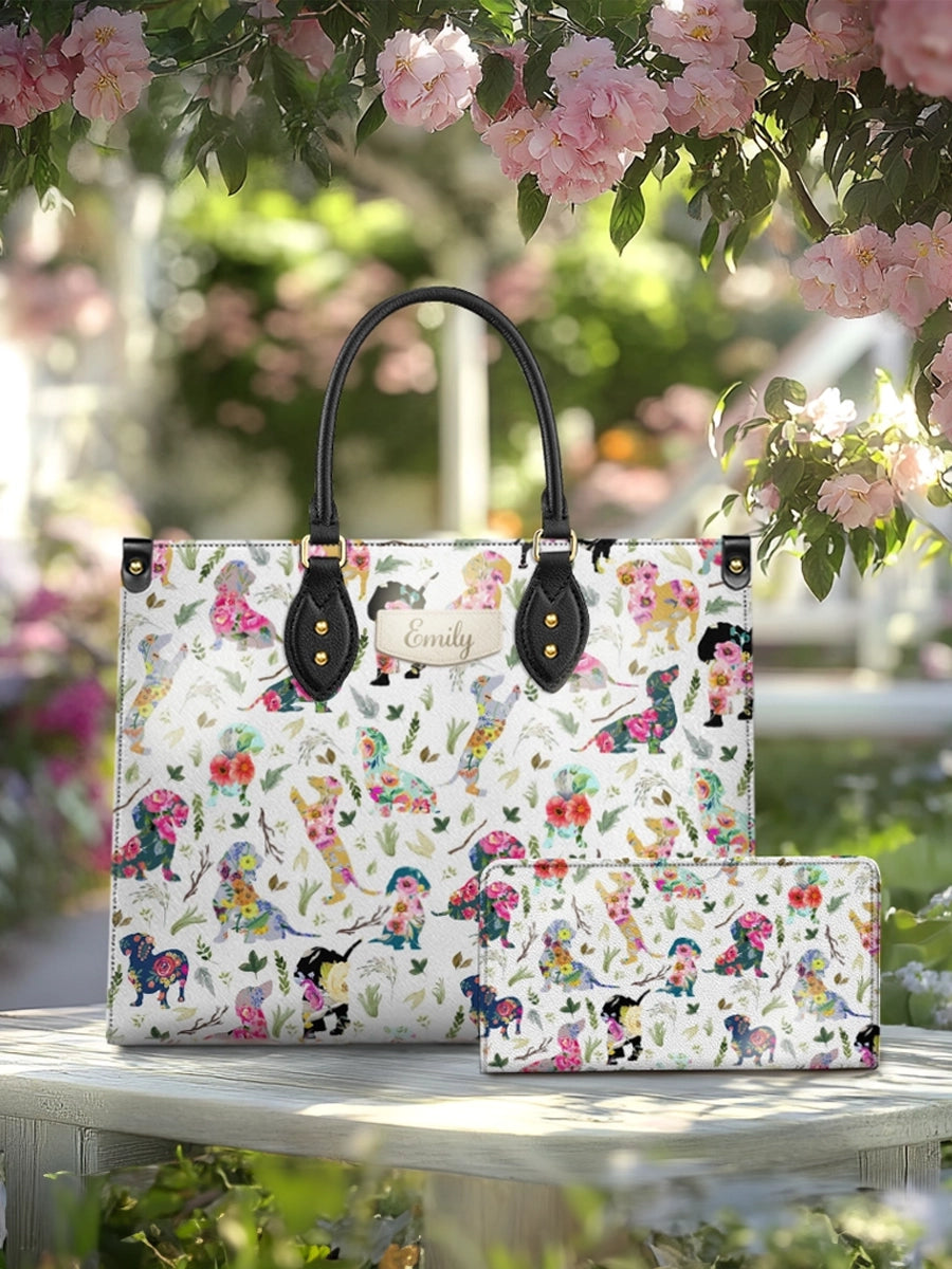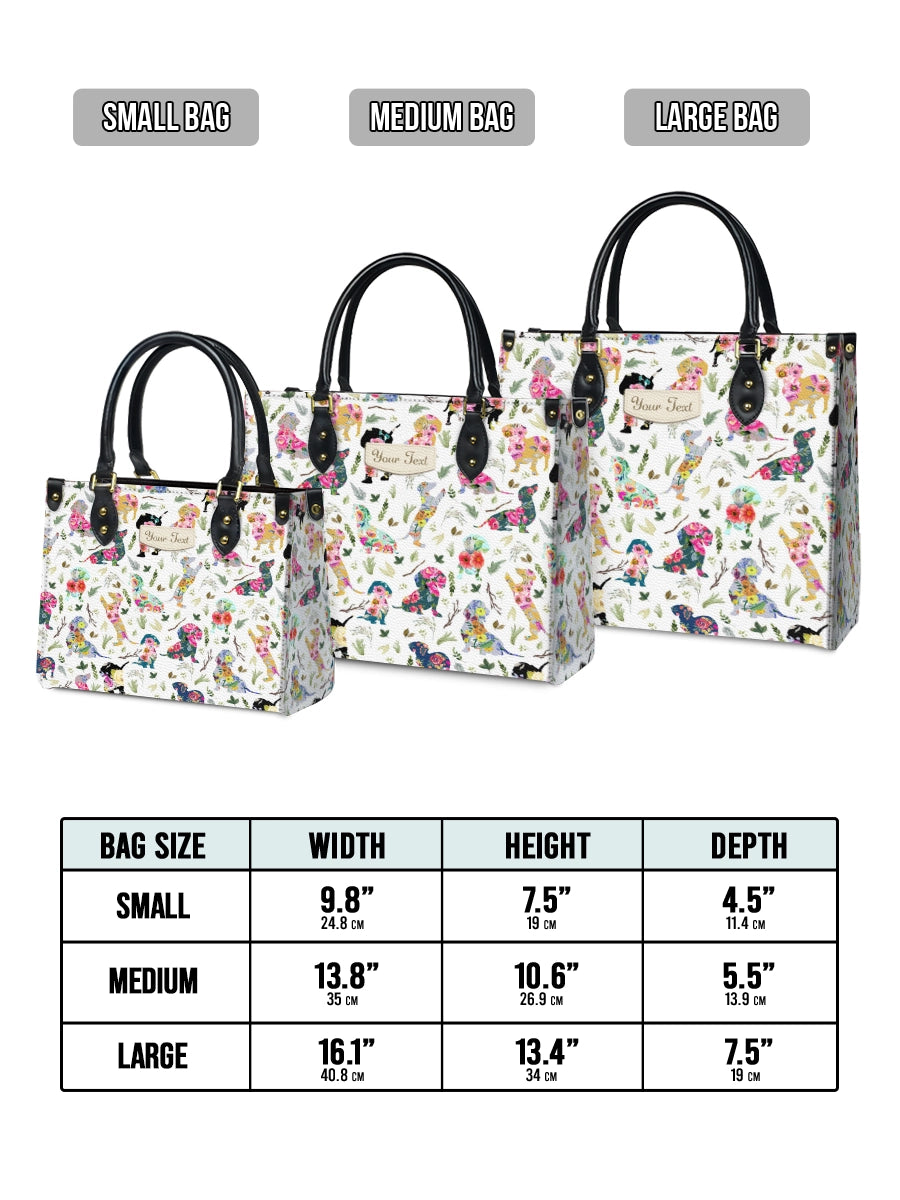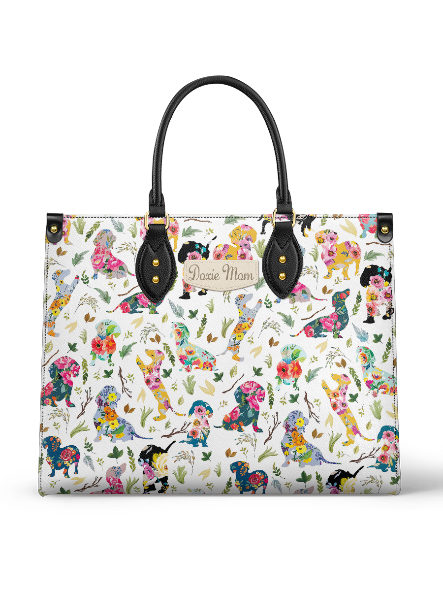 Bursting with joyful energy, Floral Parade is a celebration of color, creativity, and canine charm. Covered in whimsical dachshund silhouettes adorned with vibrant floral patterns, this leather bag transforms every walk into a mini festival of happiness.