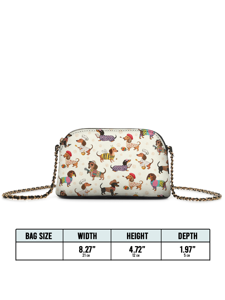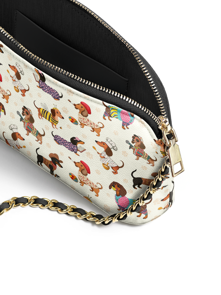 Thoughtfully crafted with charm and character, the DachyCharm Crossbody Bag blends playful spirit with timeless design. Its petite silhouette, sleek chain strap, and whimsical dachshund artwork turn everyday outings into moments of joy and self-expression
