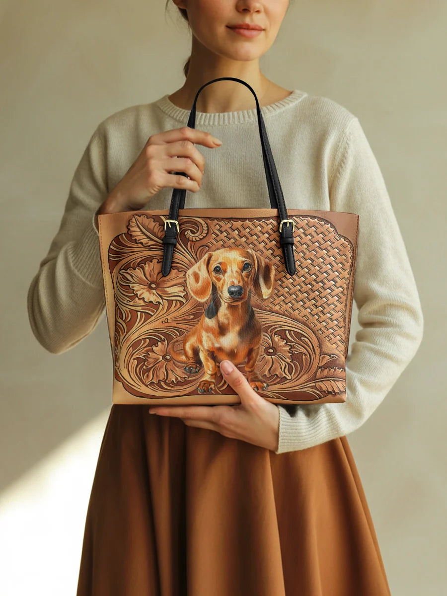Charming, spirited, and unmistakably yours. The DachyCharm Tote Bag blends timeless elegance with playful dachshund artistry, capturing hearts with every glance. Crafted from premium leather and designed for everyday ease, it’s more than a bag—it’s a joyful expression of your unique bond.