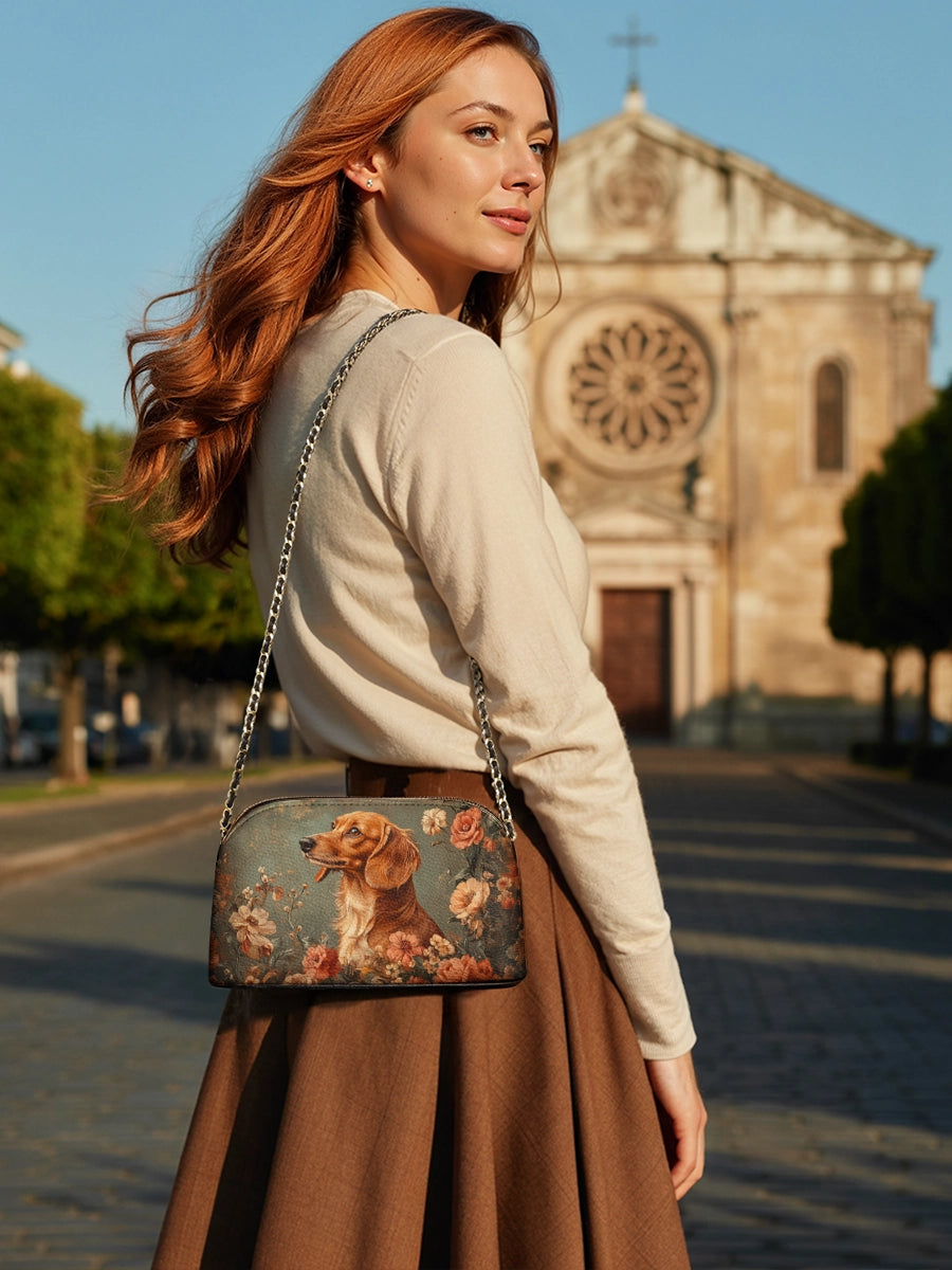 Thoughtfully crafted with charm and character, the DachyCharm Crossbody Bag blends playful spirit with timeless design. Its petite silhouette, sleek chain strap, and whimsical dachshund artwork turn everyday outings into moments of joy and self-expression