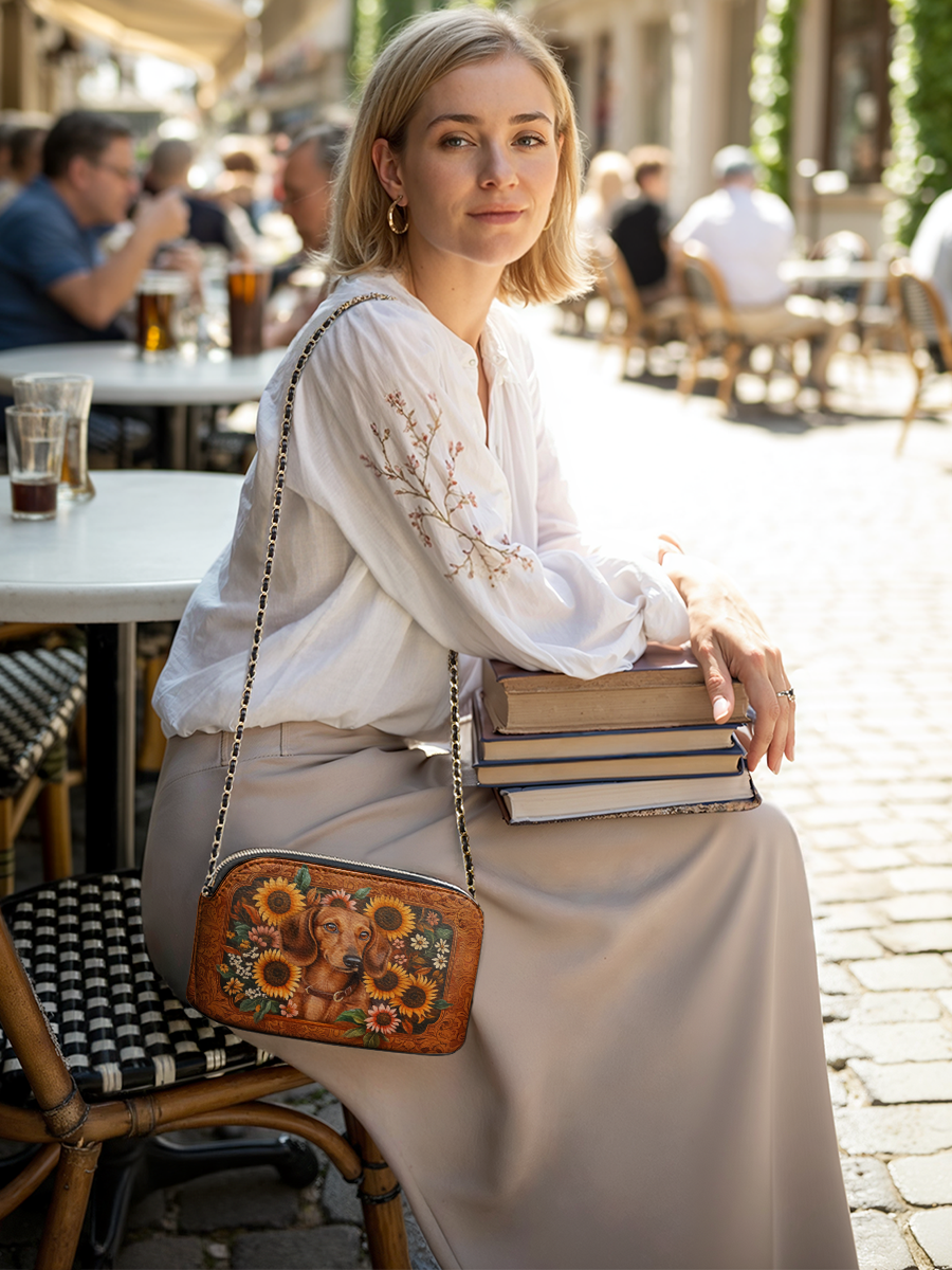 Thoughtfully crafted with charm and character, the DachyCharm Crossbody Bag blends playful spirit with timeless design. Its petite silhouette, sleek chain strap, and whimsical dachshund artwork turn everyday outings into moments of joy and self-expression