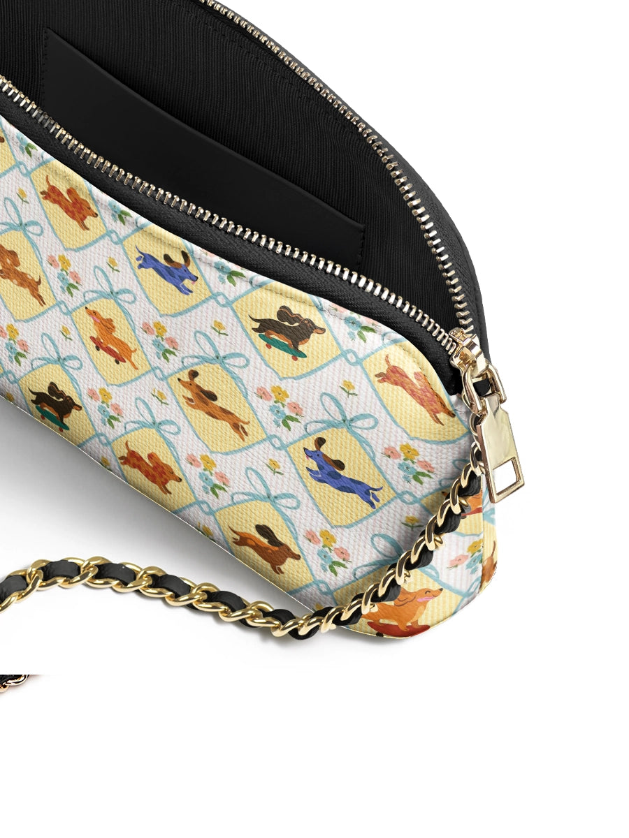 Thoughtfully crafted with charm and character, the DachyCharm Crossbody Bag blends playful spirit with timeless design. Its petite silhouette, sleek chain strap, and whimsical dachshund artwork turn everyday outings into moments of joy and self-expression