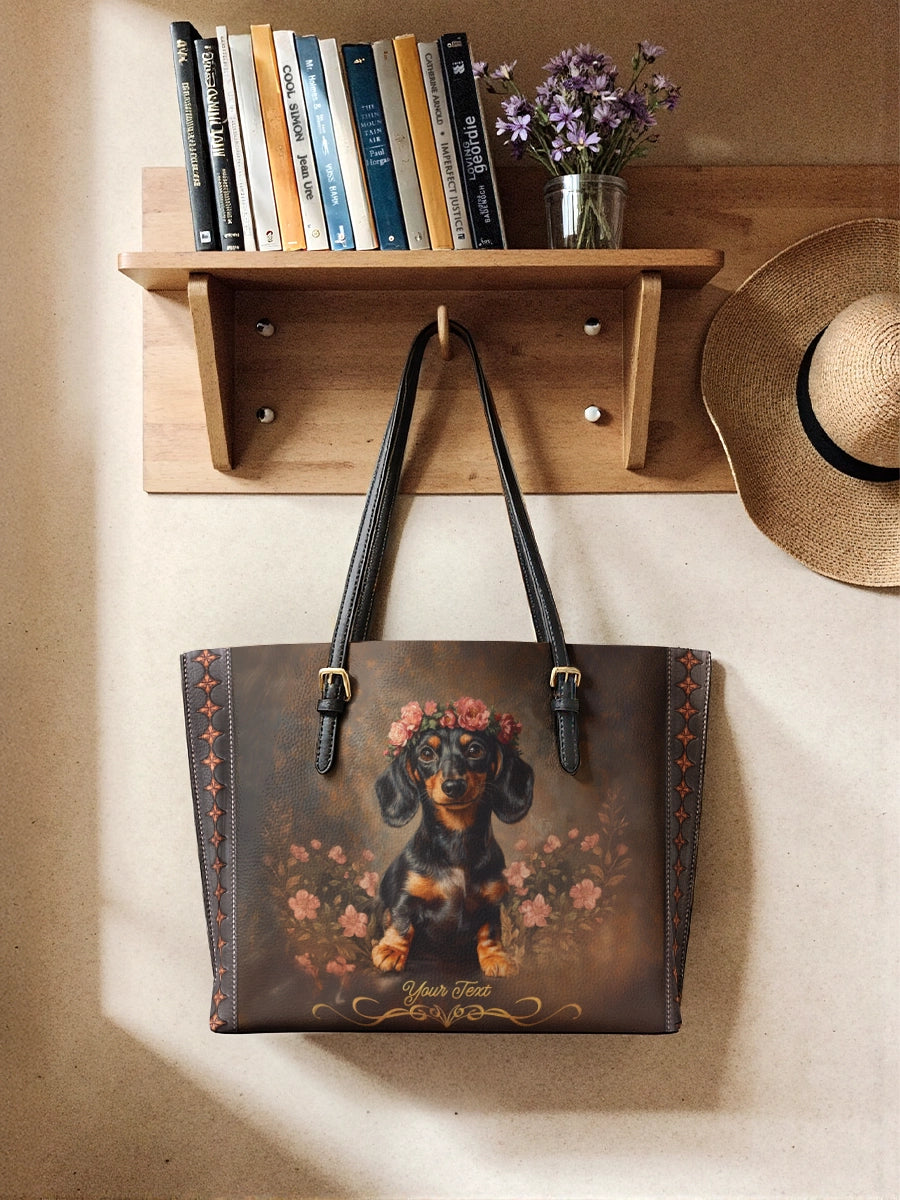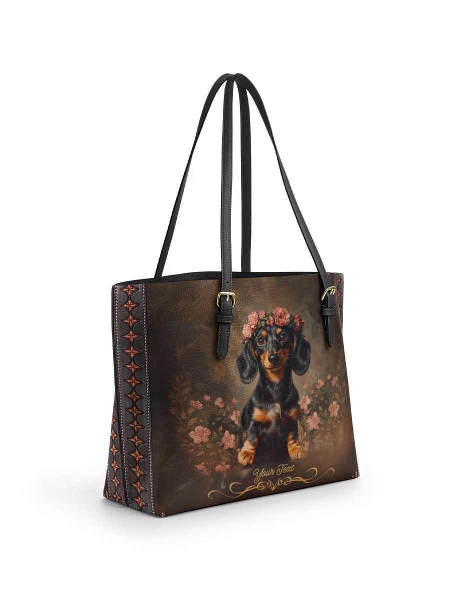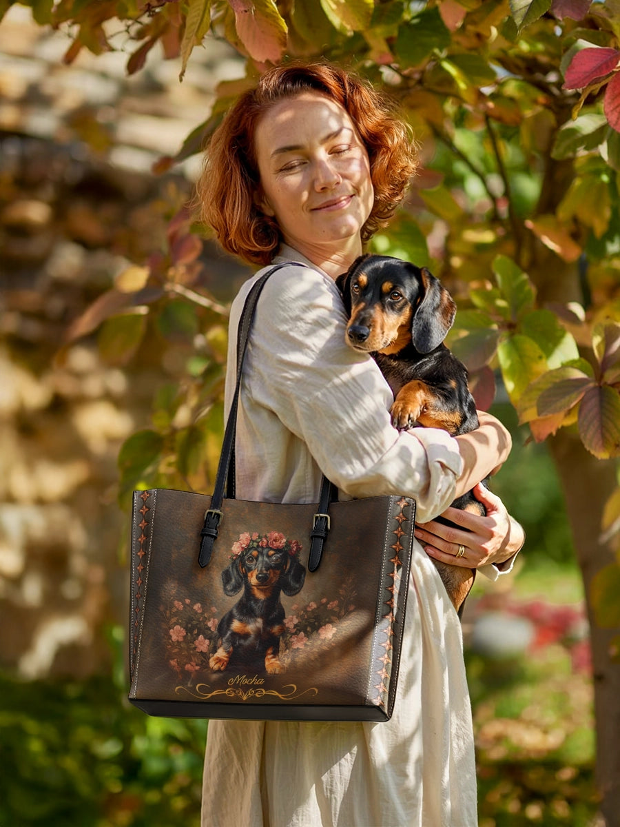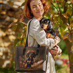 Charming, spirited, and unmistakably yours. The DachyCharm Tote Bag blends timeless elegance with playful dachshund artistry, capturing hearts with every glance. Crafted from premium leather and designed for everyday ease, it’s more than a bag—it’s a joyful expression of your unique bond.
