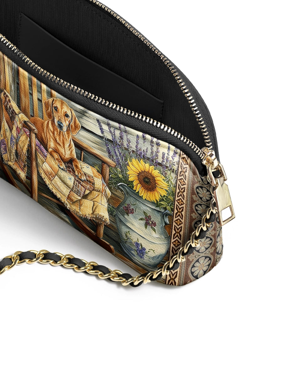 Thoughtfully crafted with charm and character, the DachyCharm Crossbody Bag blends playful spirit with timeless design. Its petite silhouette, sleek chain strap, and whimsical dachshund artwork turn everyday outings into moments of joy and self-expression