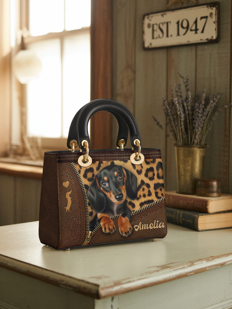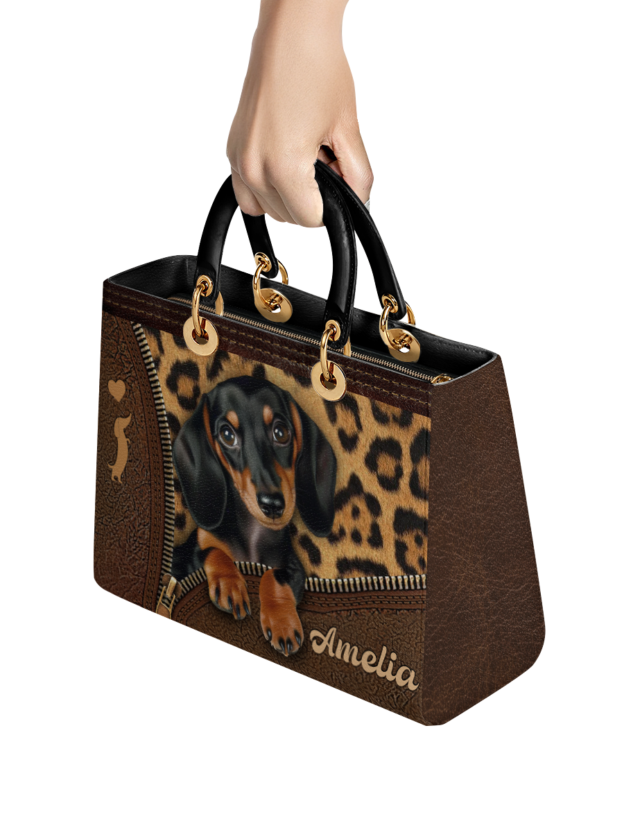 DachyCharm Sassy Doxie Personalized Lady Leather Bag