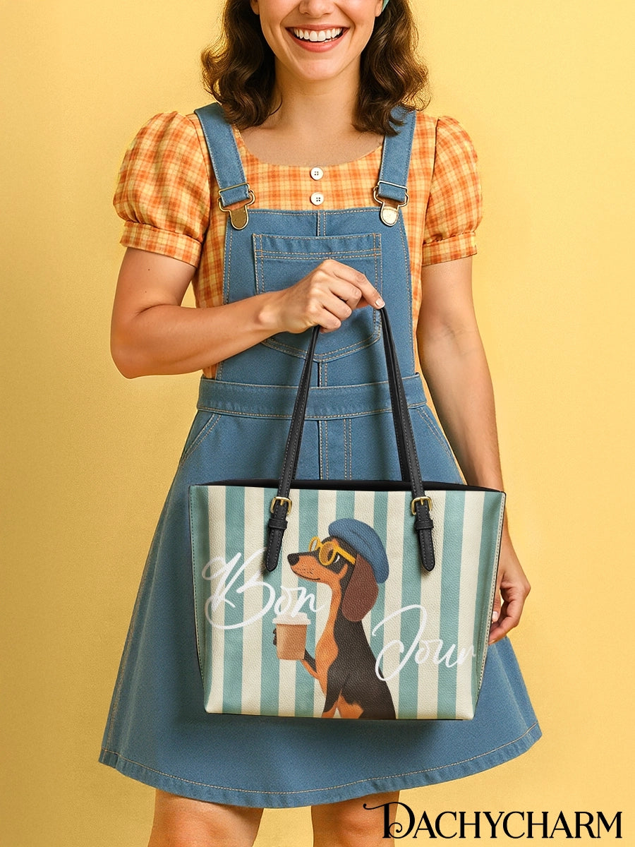DachyCharm Say Bonjour Leather Tote Bag