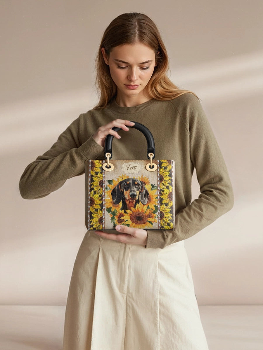 DachyCharm Sunbeam Pup Persionalized Lady Leather Bag