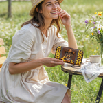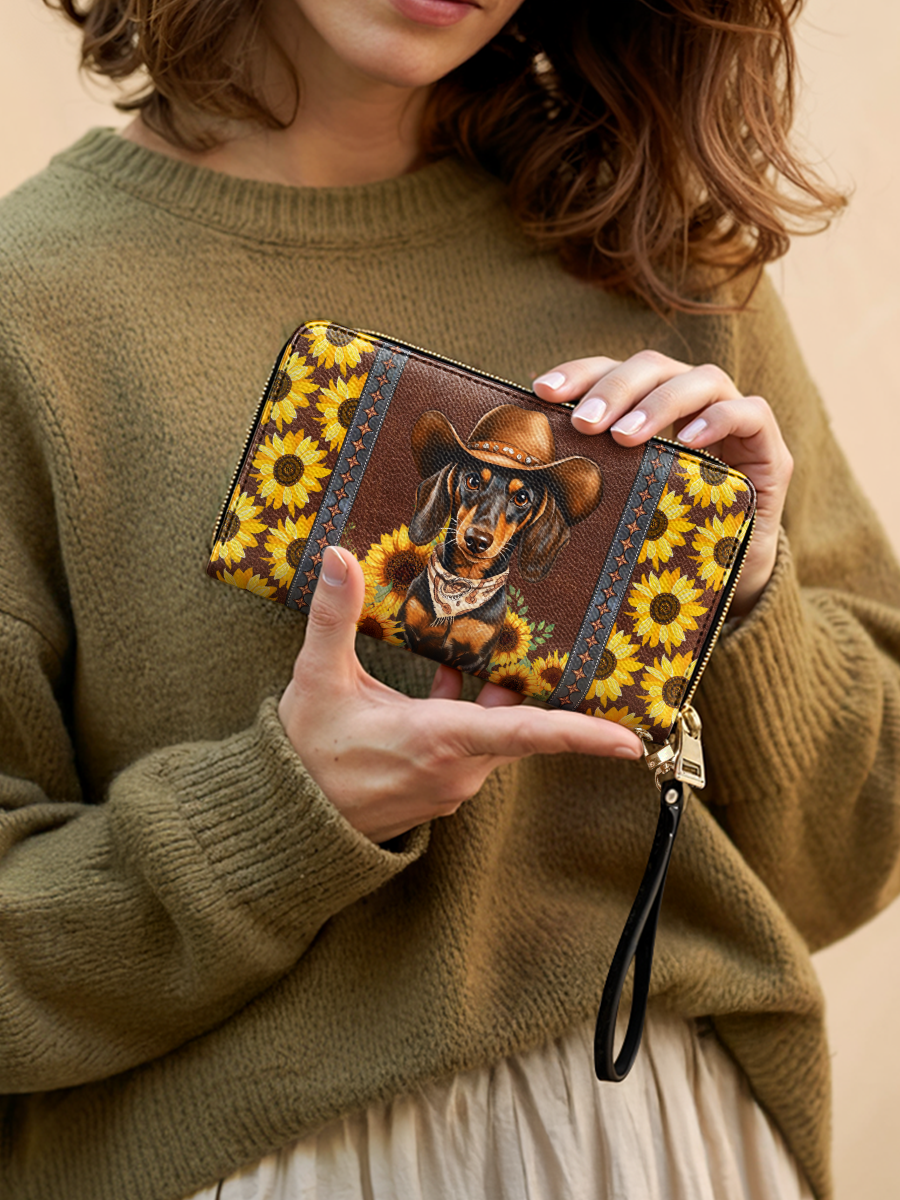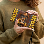 Saddle up with Sunflower Cowboy — a compact wallet that’s as bold as it is blooming. Featuring a dapper dachshund in full Western gear surrounded by sunflowers and leather textures, it’s your go-to piece for adding country soul to any moment.