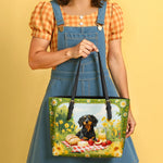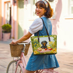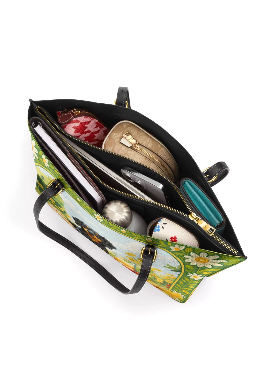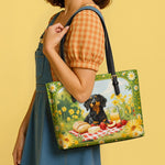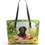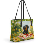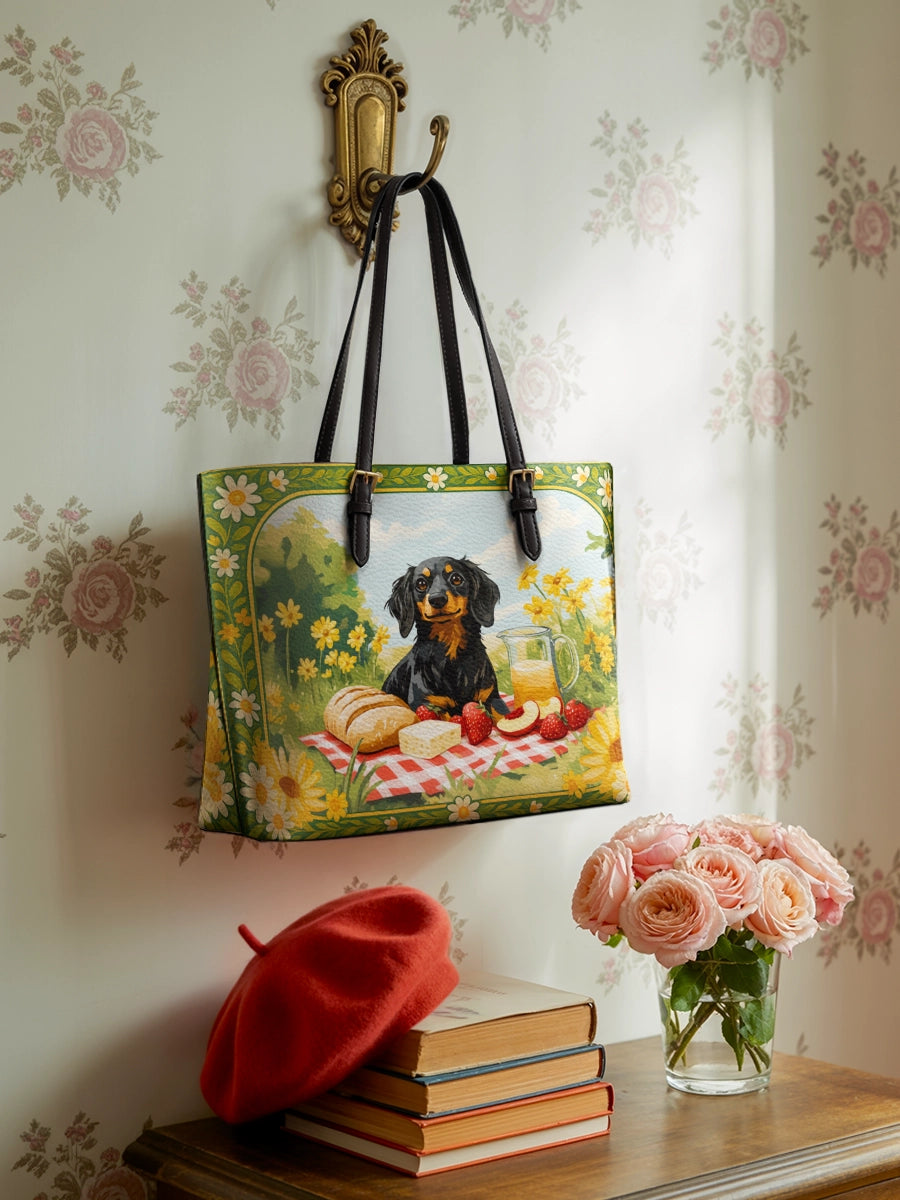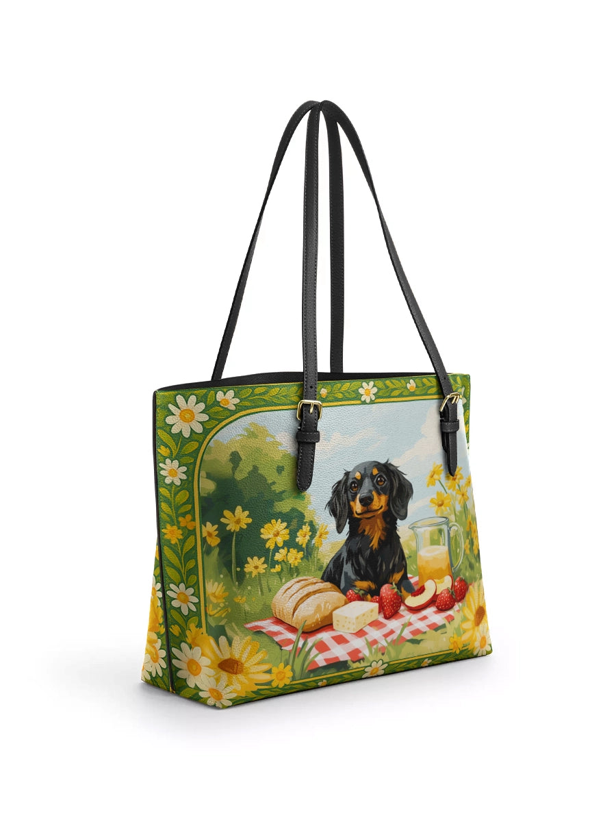 DachyCharm Sunny Picnic Pup Leather Tote Bag